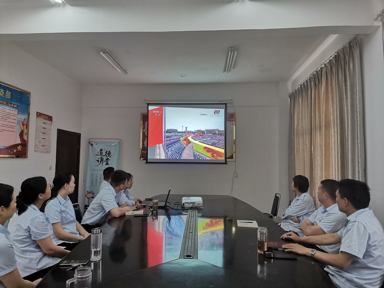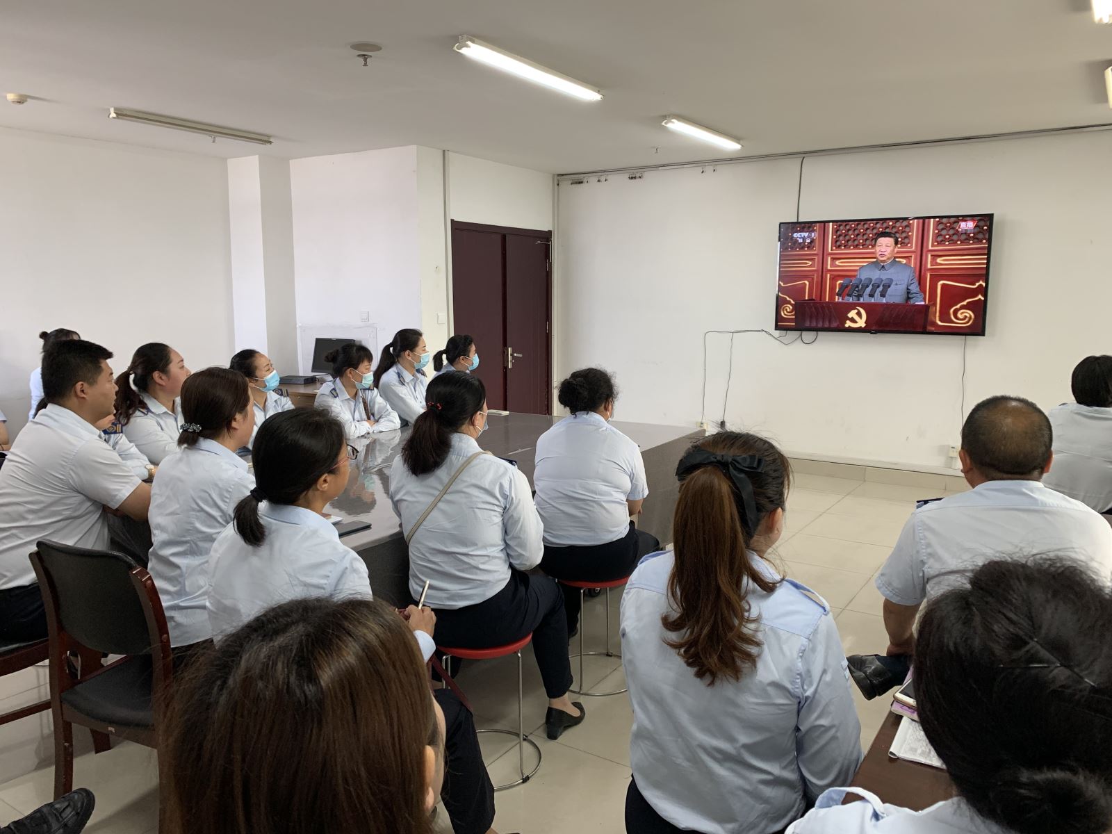 為慶祝中國(guó)共產(chǎn)黨成立,公交集團(tuán)機(jī)關(guān)支部組織機(jī)關(guān)全體黨員、積極分子在二樓會(huì)議室集中收看慶祝中國(guó)共產(chǎn)黨成立100周年大會(huì)全程直播實(shí)況。