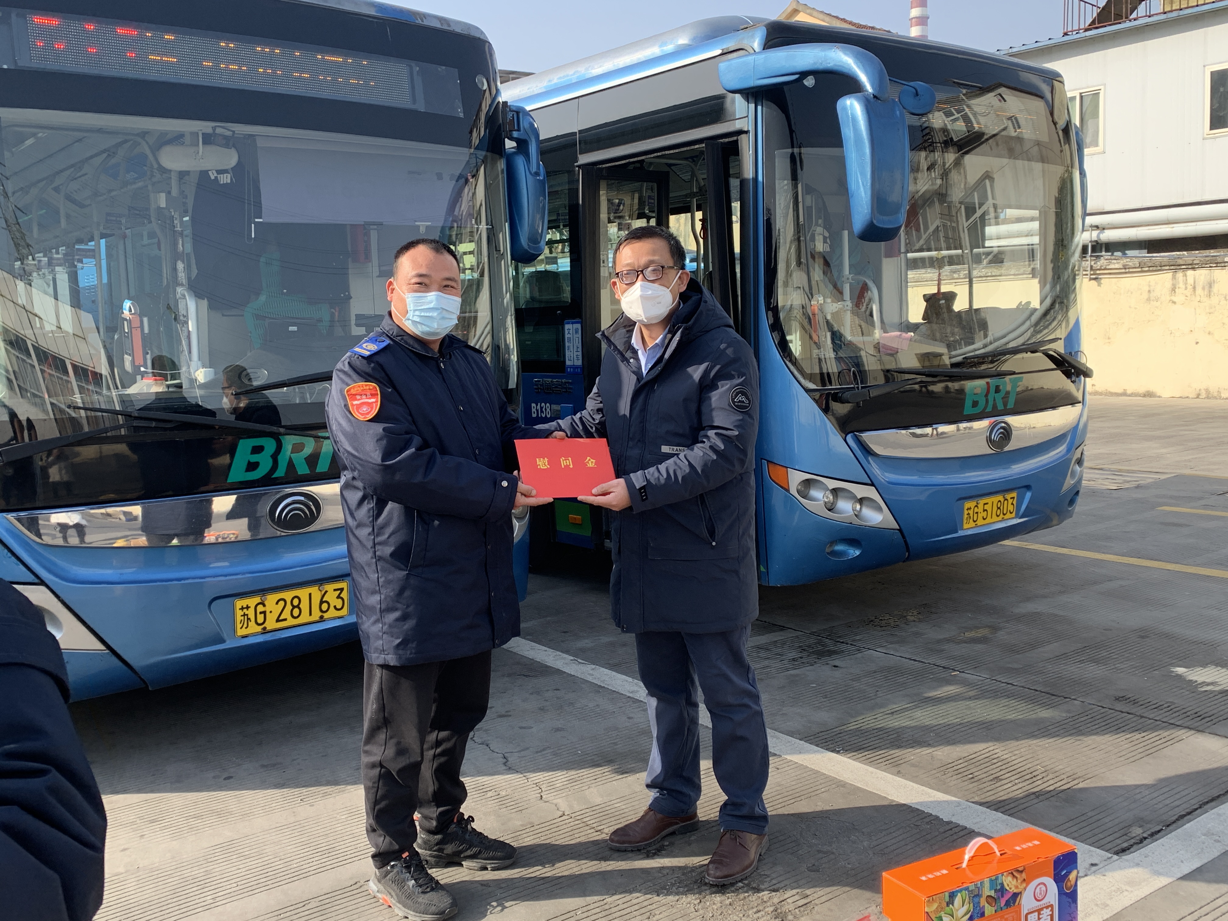 在海州客運站場站,霍部長為受表彰人員龐洪剛送上慰問金和油、牛奶、堅果等慰問品并對他英勇善舉給予了高度肯定和崇高敬意。同時,還鼓勵龐洪剛要繼續(xù)弘揚見義勇為精神,號召更多身邊的駕駛員同事參與到見義勇為事業(yè)中來,力爭在公交行業(yè)內(nèi)形成“人人崇尚見義勇為、人人敢于見義勇為”的良好風(fēng)尚。