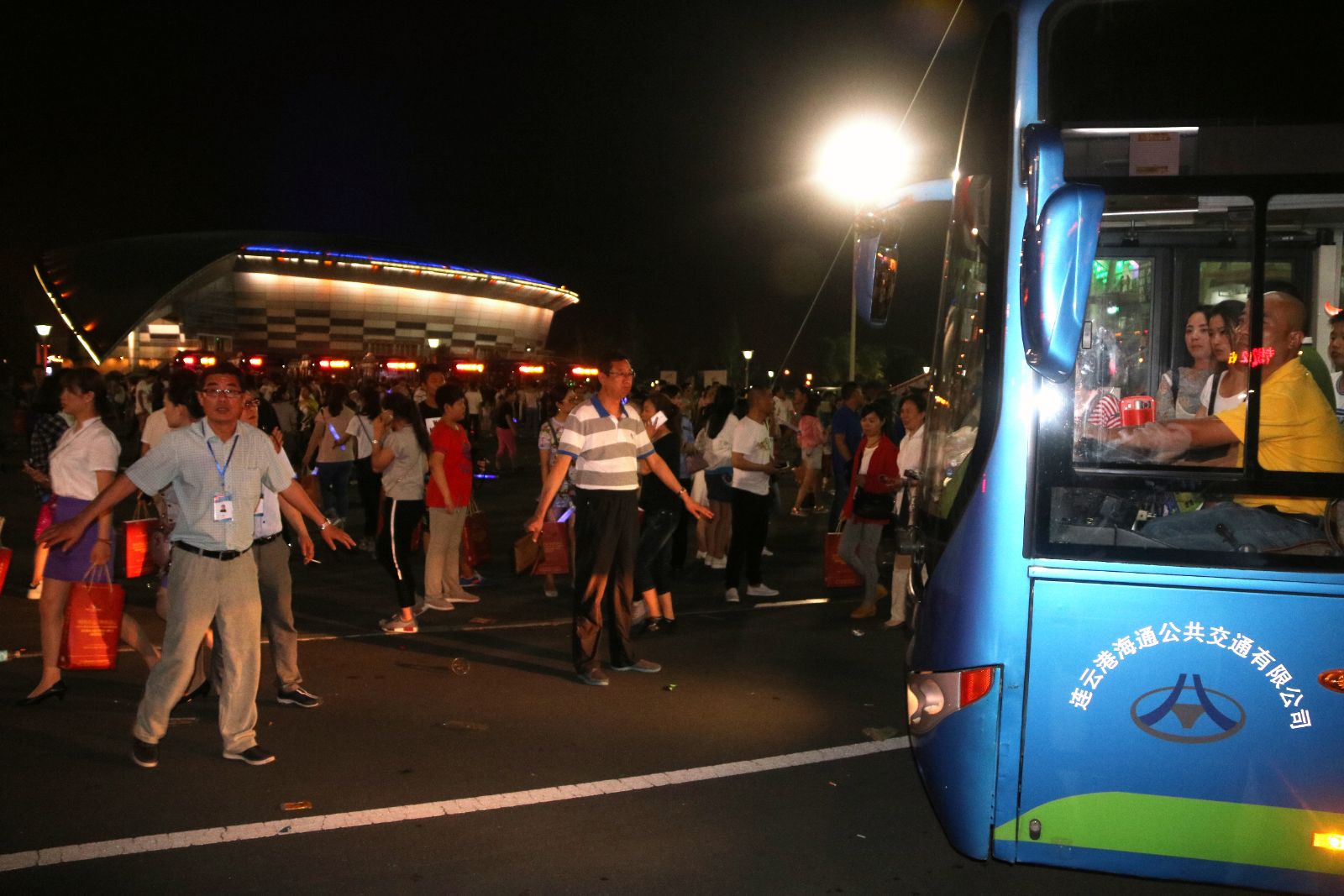 演唱會(huì)散場(chǎng)后,海通公交開通了5條直通車,分別途經(jīng)市區(qū)解放路、蒼梧路、海連路、朝陽路、港城大道等主干道,同時(shí)對(duì)BRT一號(hào)線進(jìn)行了班次加密。公司領(lǐng)導(dǎo)、各部門、各運(yùn)營(yíng)單位主要負(fù)責(zé)人一同到達(dá)現(xiàn)場(chǎng),共同進(jìn)行現(xiàn)場(chǎng)觀眾的輸送工作,確保了2016“連云港之夏”交通運(yùn)輸保障工作的圓滿完成。經(jīng)統(tǒng)計(jì),晚間散場(chǎng)期間,公司實(shí)際投放運(yùn)力55臺(tái),運(yùn)送觀眾約3750人次。