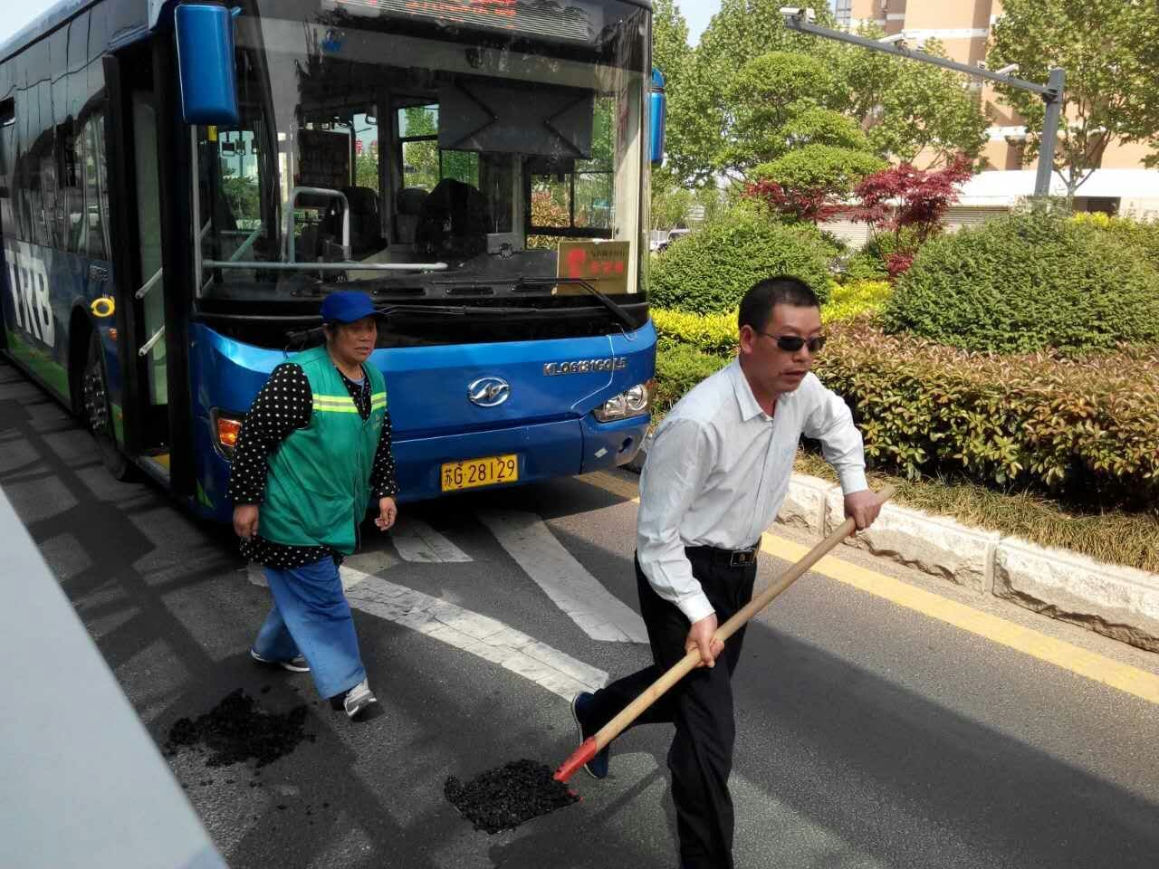 10月6日,海州市民王先生給蒼梧晚報新聞熱線打電話,點名表揚BRT公交車駕駛員葛二林,說:“真是讓人感動,BRT駕駛員為了讓大家更安全更舒適地乘坐車輛,拎著鐵桶修補路面。”葛二林是個公交車老司機,多年的工作讓他對交通安全有種本能的關(guān)注。每天在BRT一號線上來來回回,葛二林發(fā)現(xiàn),宋跳站附近的公交車道上,不知什么時候被壓出了一個個大小共有12個,最深的地方足有近20厘米深。次次經(jīng)過都要“被坑”,乘客們抱怨,他也心疼自己的公交車,尤其擔心路面塌陷帶來的交通隱患。于是,他合計著一定要把坑填一填。葛二林用了近一個小時,和站務員劉雪一桶一桶的把坑填平,此善舉感動了站內(nèi)的乘客和正在跑班的駕駛員,乘客紛紛拿手機拍照,駕駛員鳴笛稱贊。其實這已經(jīng)不是他第一次主動修整路面了,每逢天氣炎熱,BRT專用道站臺安全門路面總會凹凸不平,一塊塊“頑疾”,影響著來往的車輛,乘客坐在車上也很不舒服,為此他特地備置了工具筐、鐵鎬、瀝青塊等家伙什,等到自己休息時,前后修整了光明小區(qū)站、自來水公司站、移動公司站、院前站、嘉瑞寶廣場站等8個站點路面。葛師傅說,路鋪平了,乘客舒坦,他開起車來也安心。“別的司機看到路鋪平了,都沖我鳴喇叭、豎大拇指!”得到大家的肯定,葛二林開心的笑了。