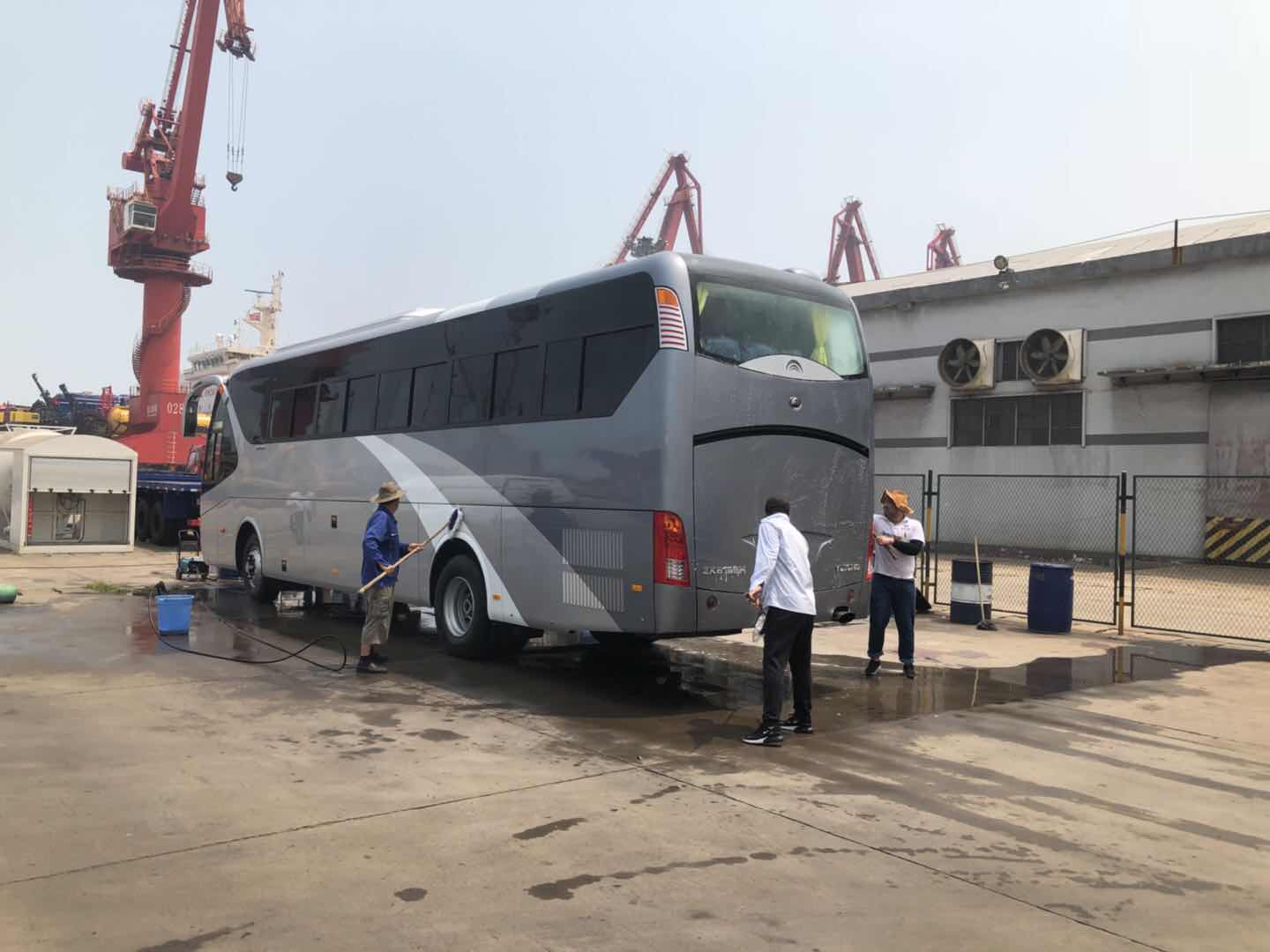 臺風過后,港口地表溫度達50多度,公交集團汽服公司因承接了宇通近100臺車輛的出口清洗檢驗任務,面對任務重、時間緊、標準高的出口要求,為了能按時保質(zhì)完成此項任務,公交汽服的港口工作人員頂著高溫,穿戴整齊,服從指揮,按部就班的執(zhí)行清洗檢驗工作,盡管汗珠浸濕了衣背,高溫天氣并不影響工作人員的工作熱情和工作態(tài)度。公司維修部的人員也在抓緊時間,緊鑼密鼓搶修出現(xiàn)問題的公交車輛,汗水濕透了他們的衣裳,雖然辛苦,但看到公交車又能為乘客的出行提供便利,他們的心里別提有多開心了。