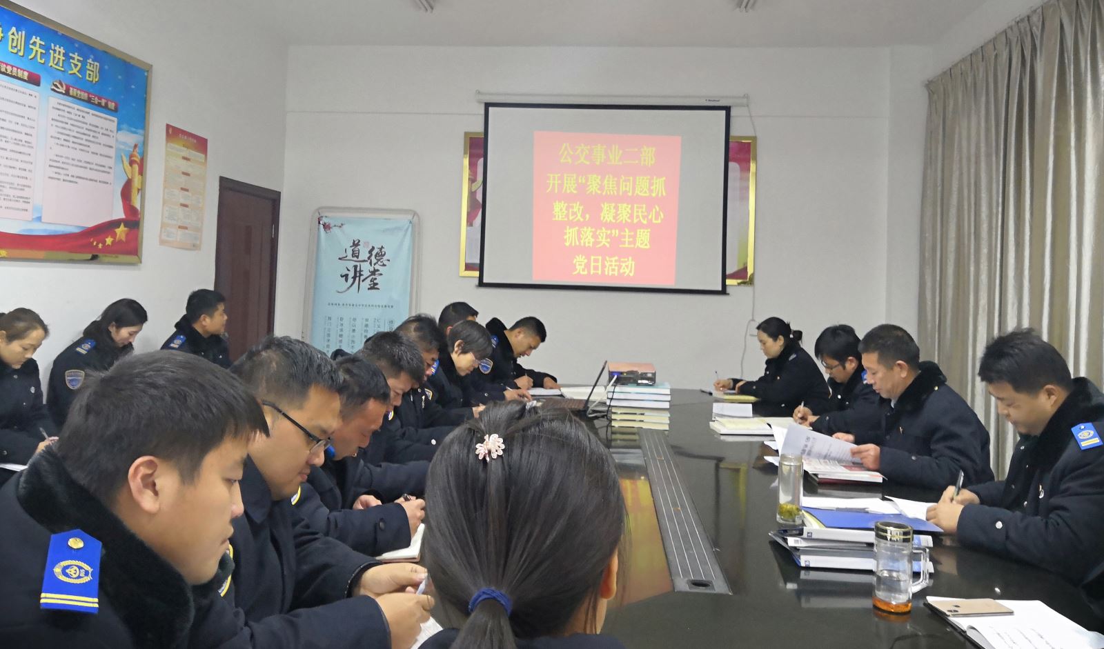為深入開展“不忘初心、牢記使命”主題教育,進(jìn)一步學(xué)習(xí)貫徹習(xí)近平新時代中國特色社會主義思想和十九屆四中全會會議精神,公交集團(tuán)各事業(yè)部黨總支、黨支部開展了“聚焦問題抓整改,凝聚民心抓落實”主題教育活動,全體黨員、入黨積極分子參加活動。