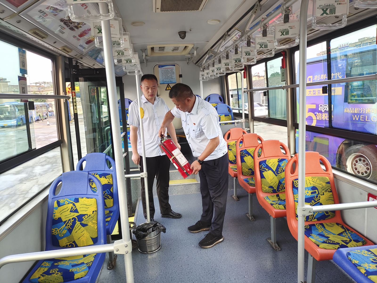各檢查小組分工明確、各司其職,一是對場站內(nèi)消防通道是否通暢、滅火器設(shè)施擺放和使用情況、消防沙是否有效、照明燈是否有損壞、水管是否漏水等各項(xiàng)消防設(shè)施進(jìn)行全面排查,發(fā)現(xiàn)隱患問題立即整改到位。二是對車內(nèi)安全設(shè)施、發(fā)動(dòng)機(jī)倉、電瓶倉等進(jìn)行排查,重點(diǎn)排查發(fā)動(dòng)機(jī)倉有無脫落線頭,發(fā)現(xiàn)問題立即予以當(dāng)場整改。三是對各場站門衛(wèi)進(jìn)行安全交代,對進(jìn)出場人員做好登記,特別是夜間,門衛(wèi)要做到按時(shí)巡場,確保場站內(nèi)消防通道暢通無遮擋。