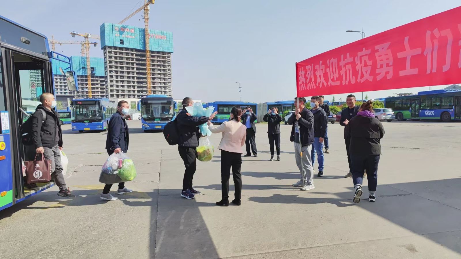 4月17日早上8點(diǎn)53分,公交集團(tuán)快速公交事業(yè)部西城停車場(chǎng)內(nèi)熱鬧非凡,隨著一陣熱烈的掌聲迎來了參加港城疫情轉(zhuǎn)運(yùn)勇士們的凱旋。