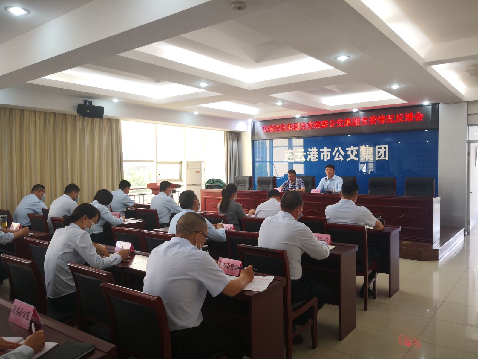 5月26日上午,交通控股集團(tuán)黨委巡察公交集團(tuán)黨委情況反饋會召開。會議由公交集團(tuán)黨委書記、總經(jīng)理王學(xué)兵主持,交通控股集團(tuán)黨委第二巡察組組長李政霖、組員龔燚,公交集團(tuán)領(lǐng)導(dǎo)班子、各事業(yè)部黨政主要負(fù)責(zé)人以及機關(guān)部室主要負(fù)責(zé)人參加會議。