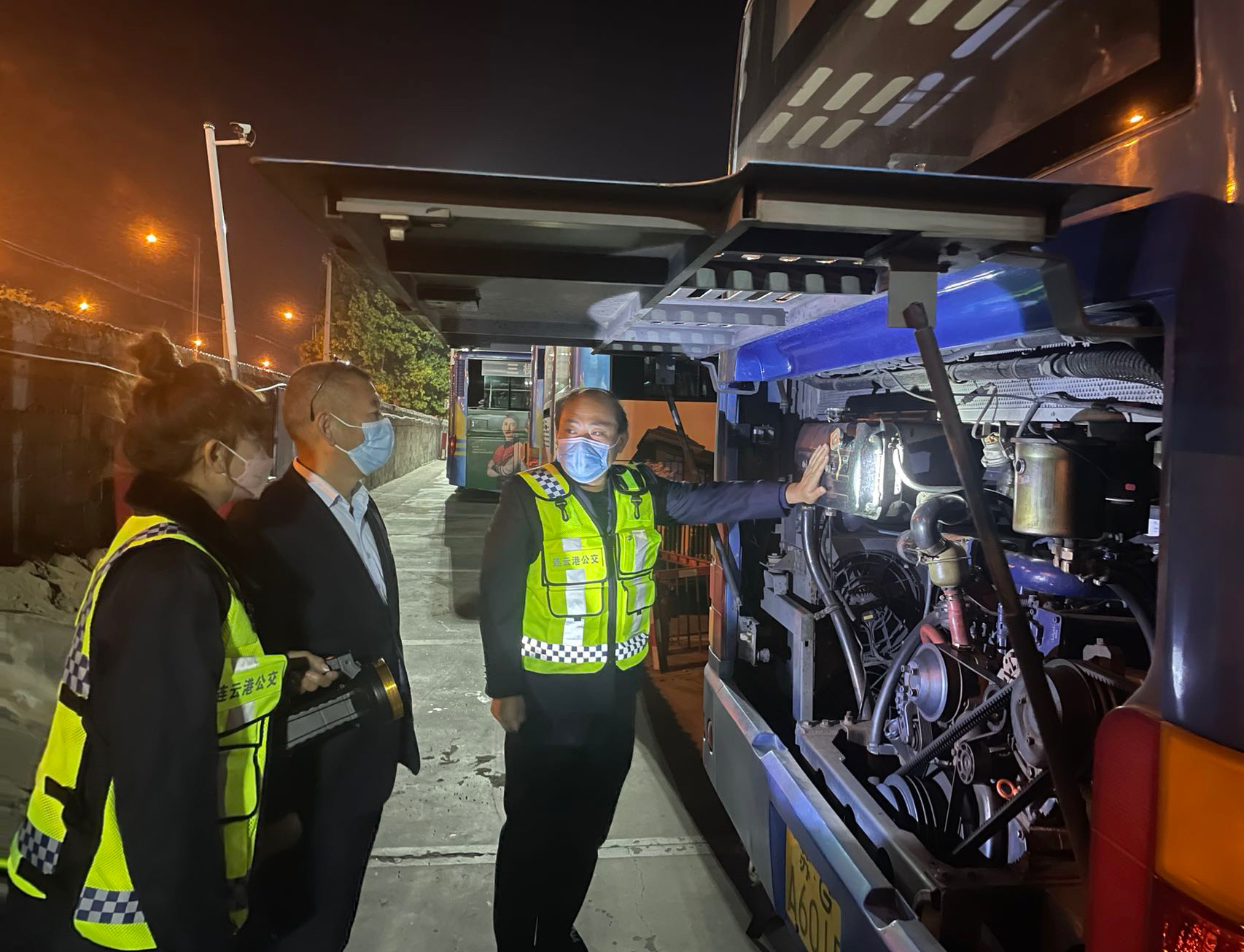 為全力維護二十大和公交事業(yè)一部大干四季度期間安全穩(wěn)定,緊緊圍繞連公交傳【2022】11號《關于深刻汲取事故教訓立即開展安全生產(chǎn)大檢查工作的緊急通知》文件精神,10月20日晚,公交集團公交事業(yè)一部支部書記、經(jīng)理王浩帶領安全科人員對所屬場站開展安全生產(chǎn)大檢查行動。