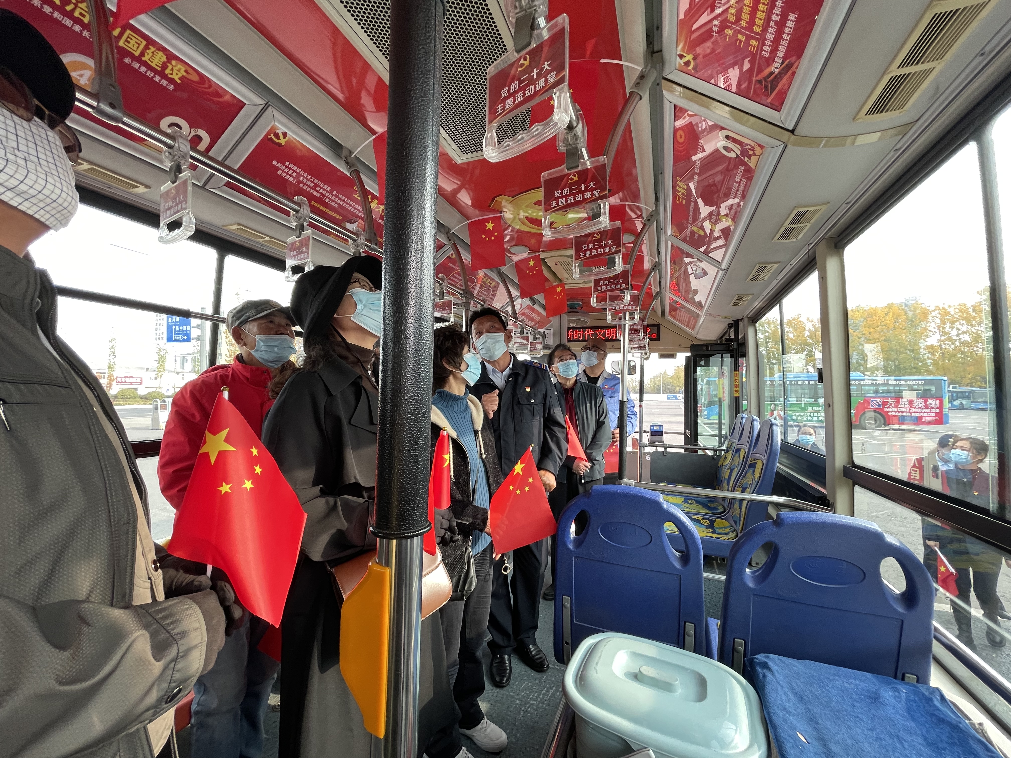 公交集團以站場、公交車廂為黨的理論宣傳載體,精心打造黨的“二十大主題會議”車廂,將黨的二十大精神宣講到一線、傳遞到基層、延伸到社會。活動邀請老年乘客走進公交場站開展車廂“先進模范宣講”,省敬老文明號20路線長周卓文與老年乘客一起,共同觀摩了“紅色主題”車廂,聆聽先進模范講述二十大的學習感悟和先進模范事跡,在情景互動中感受來自公交的紅色宣傳氛圍,切實推動黨的二十大精神家喻戶曉、深入人心,內化為廣大人民群眾的情感意志和自覺行動。