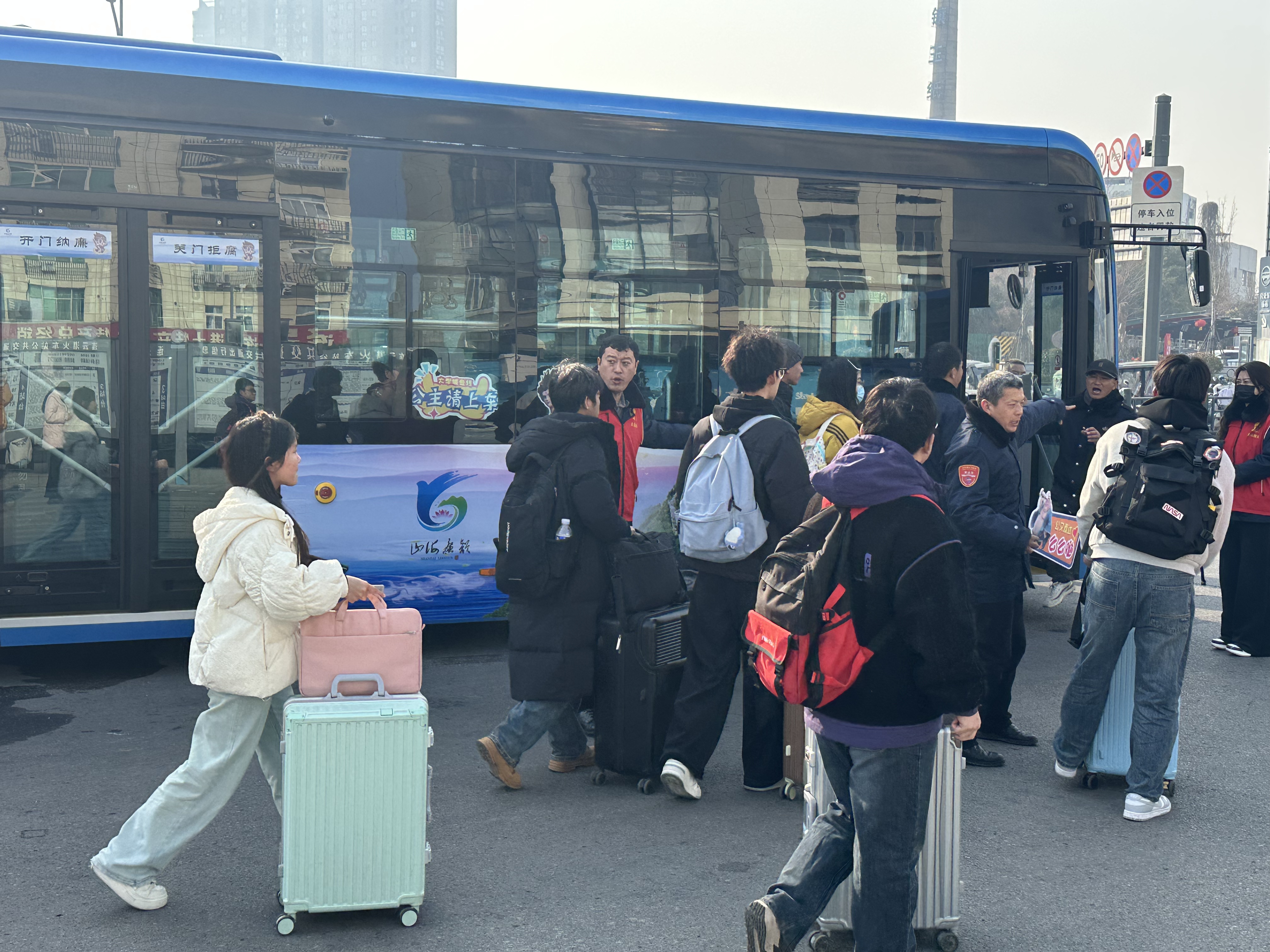 在服務(wù)保障方面,公交集團(tuán)選派經(jīng)驗(yàn)豐富的優(yōu)秀駕駛員執(zhí)乘直通車,為學(xué)生的出行安全保駕護(hù)航。同時(shí),組織后勤保障人員在火車站公交站提供貼心服務(wù),不僅引導(dǎo)學(xué)生前往乘車位置,還提供詳細(xì)的乘車咨詢服務(wù),幫助學(xué)生搬拿行李箱,讓學(xué)生在旅途中感受到溫暖。