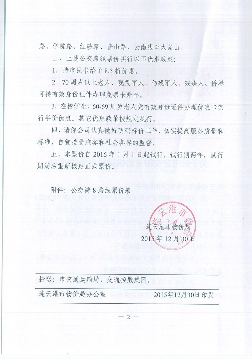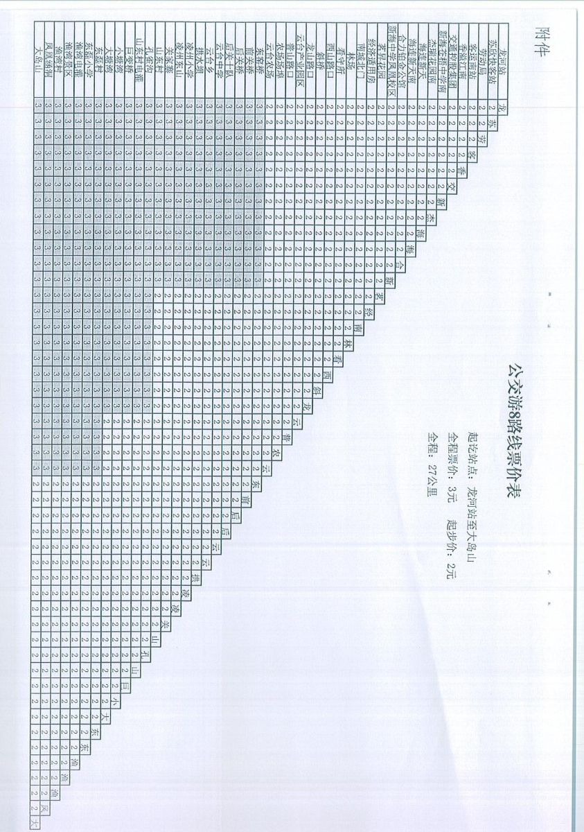 關(guān)于核定公交游8路線試行票價(jià)的通知