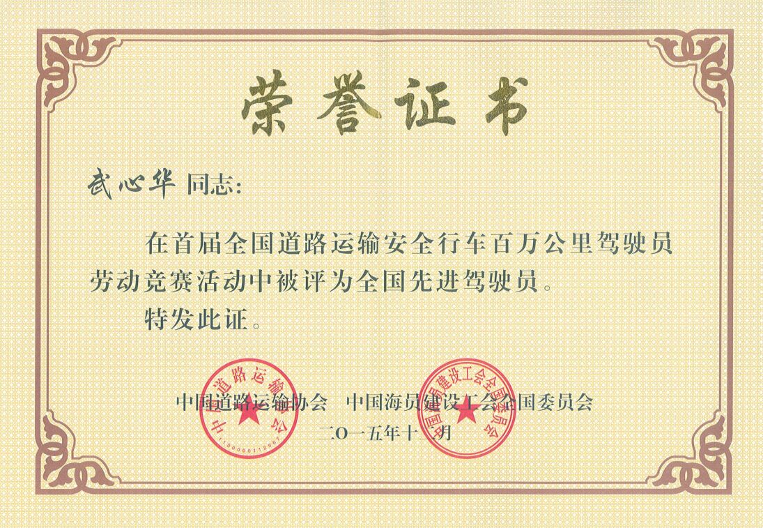 近日,海通公交公司沈濤、武心華2名駕駛員被全國(guó)道路運(yùn)輸安全行車百萬公里駕駛員勞動(dòng)競(jìng)賽組委授予“全國(guó)先進(jìn)駕駛員”榮譽(yù)稱號(hào)。目前,公司已有26名安全行車達(dá)百萬公里駕駛員,2016年公司將一如既往的加強(qiáng)安全生產(chǎn)工作,開展“強(qiáng)化基層、基礎(chǔ)、基本功”的建設(shè),為全市人民提供“安全、文明、優(yōu)質(zhì)”的出行環(huán)境。
