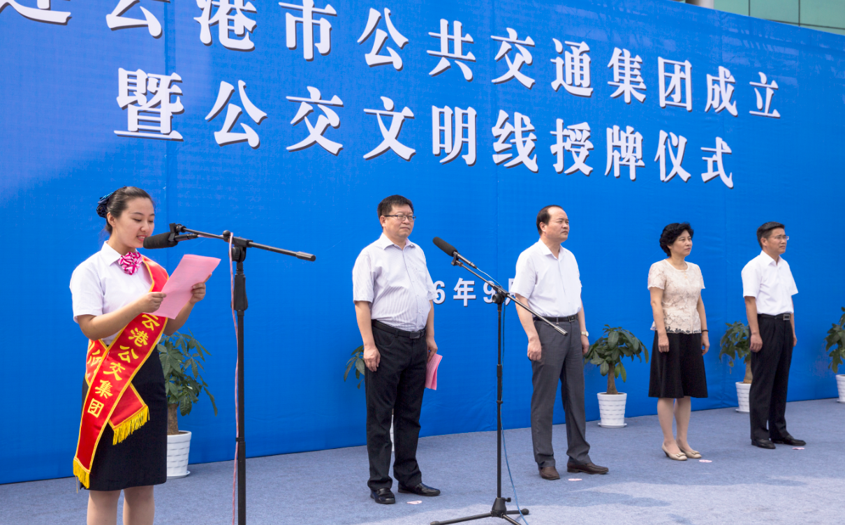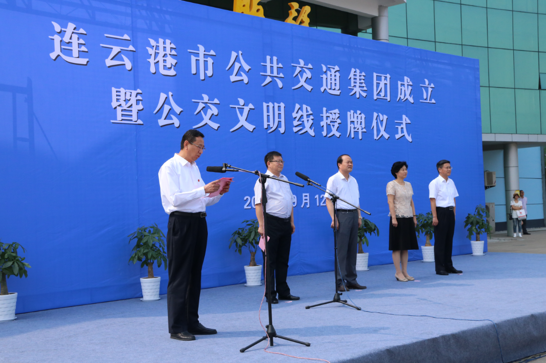 9月12日上午10時,連云港市公共交通集團成立暨四條文明線授牌儀式在公交集團院內(nèi)成功舉行,標志著我市公交事業(yè)發(fā)展進入了新起點,踏上了新征程。副市長尹哲強出席活動并為市公共交通集團揭牌,市財政局局長孫宗鳳、市發(fā)改委、經(jīng)信委、國資委、公安局、交通局、國土局、規(guī)劃局、城鄉(xiāng)建設局、運管處、交警支隊、公安公交分局等市相關(guān)部門負責人以及市交通控股集團領(lǐng)導、部門及權(quán)屬單位負責人、市公共交通集團員工代表參加活動。市交通控股集團黨委書記、董事長劉永能主持活動儀式。