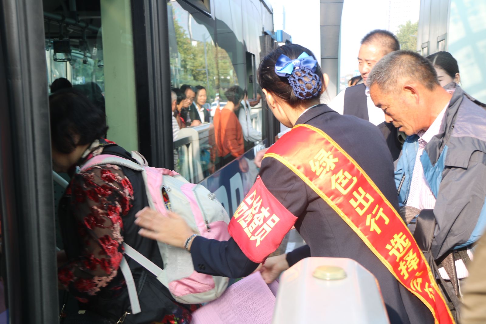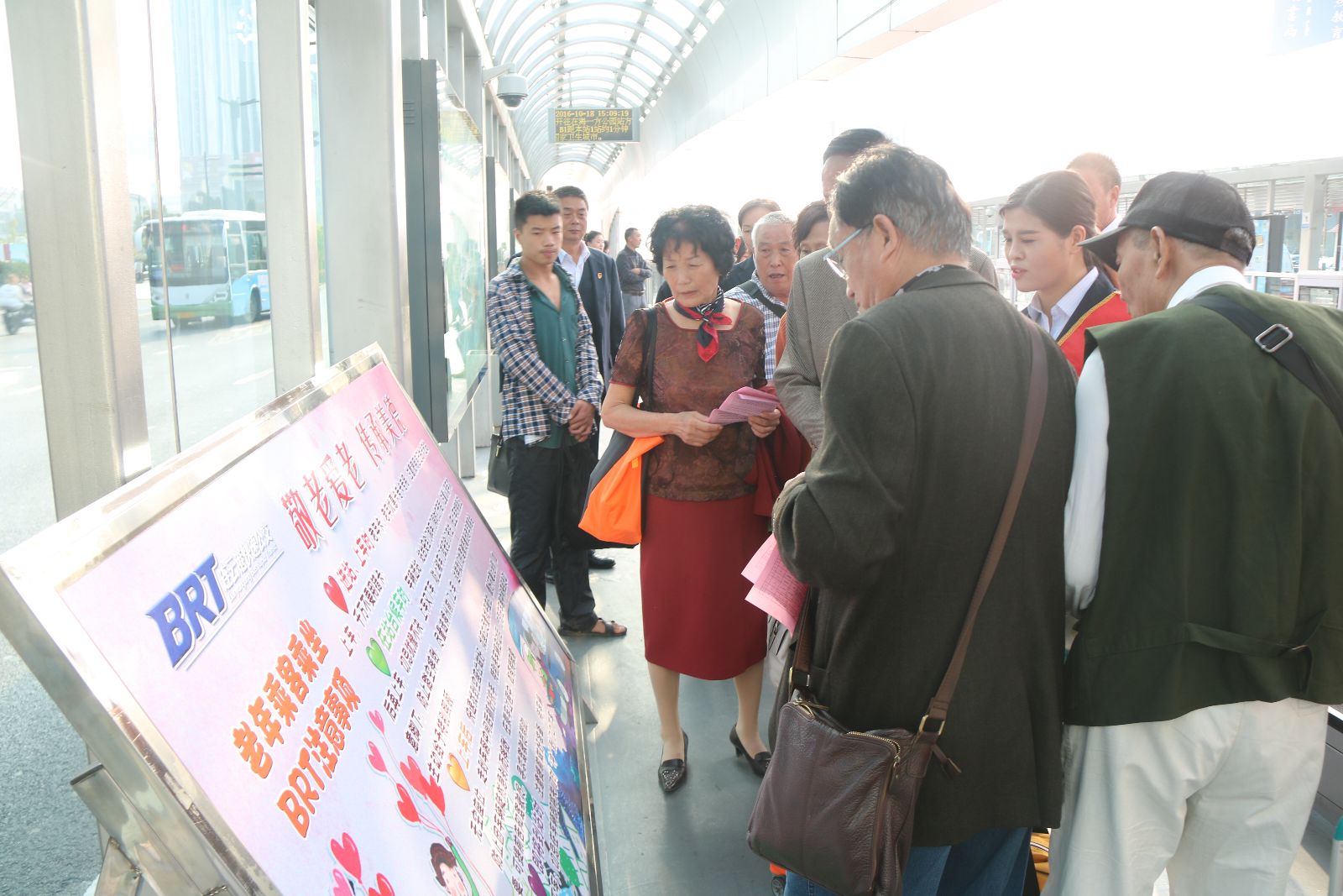 10月18日下午,工會及安管人員共8人走進(jìn)BRT龍河廣場站,開展宣傳工作,給乘客講解老年乘客乘坐BRT注意事項(xiàng),耐心回答老年乘客提出的乘車問題,收集他們對BRT的意見和建議。宣傳活動主要圍繞以下四點(diǎn):一是進(jìn)站、上車時(shí)老年卡、老年優(yōu)惠卡專卡專用。二是在站臺候車時(shí),車輛進(jìn)站,站臺安全門和車門同時(shí)打開后,注意認(rèn)清車次后再上車,防止被車門或安全門夾??;在上車時(shí)特別注意腳下,防止踏空摔倒;上車時(shí)最好選擇從前門上,這樣駕駛員會看到老年乘客上車,會給予特別關(guān)注。三是上車后,快速找到空座位做好;找座位盡量找平座位,最好不要上臺階;如無空座位,走到車廂中間后抓好扶手,特別是車輛啟動后,切忌在車廂中間來回走動;防止因車輛陡然急剎而摔倒;如有特殊需要,可告知駕駛員,尋求駕駛員幫助。四是即將到站時(shí),注意提前做好準(zhǔn)備,待車輛停穩(wěn)后下車;切忌在車輛即將關(guān)門時(shí)“沖”到門口下車。