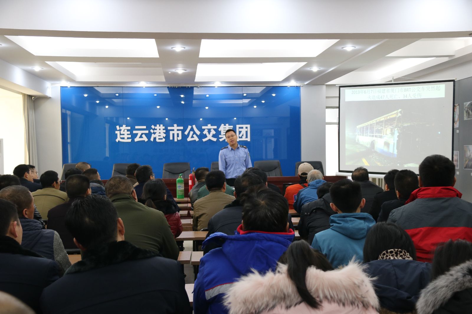 11月9日,是全國消防安全宣傳日,當前正值風干物燥,是火災(zāi)的多發(fā)季節(jié),公交集團作為主導城市客運的國有獨資企業(yè),領(lǐng)導高度重視冬季防火工作,在全面落實各項消防安全措施的基礎(chǔ)上,特邀請連云港市政安防火教育培訓中心陸成教官在宣傳日上午對集團新入職員工、充電工、部分駕駛員、權(quán)屬單位安全科長及機關(guān)總部、明茂新能源公司、傳媒公司全體管理人員共90余人進行消防知識培訓。