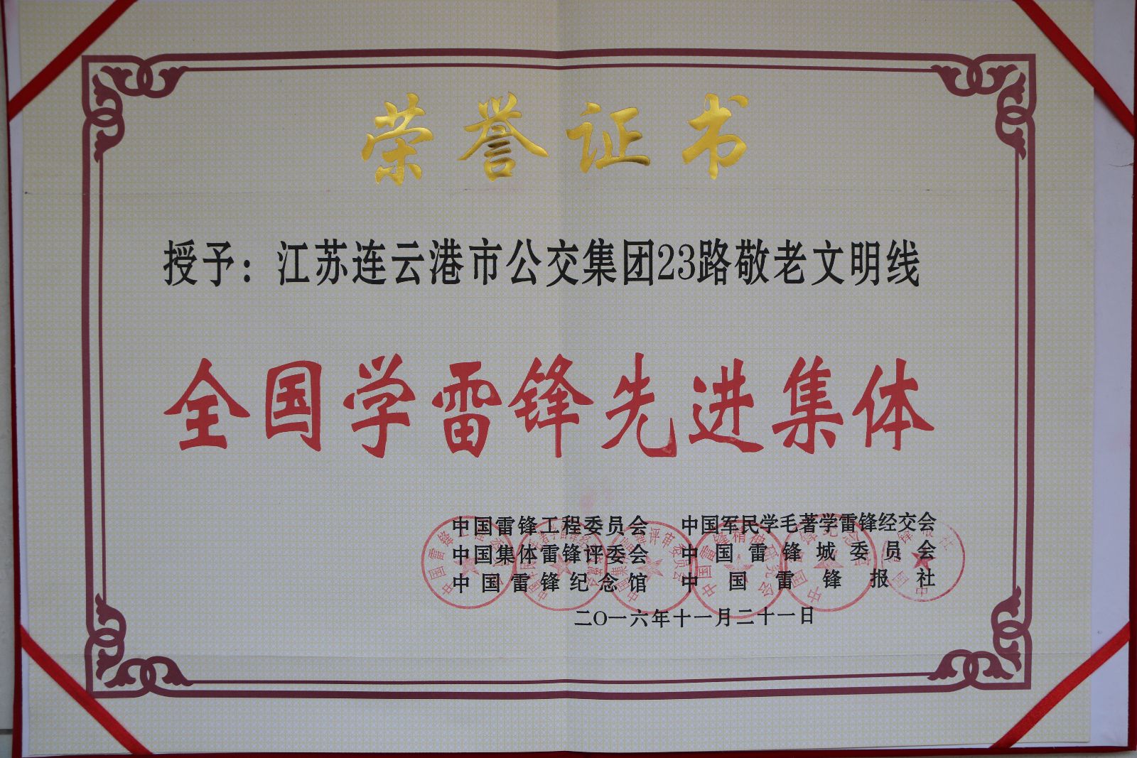 來源:綜合辦公室 作者:倪子棠 11月21日,連云港公交集團參加了在河南省焦作市舉行的全國學雷鋒經(jīng)驗交流大會,共有13個省市參加,公交集團公交23路“敬老文明線”被中國雷鋒工程委員會、全國學雷鋒辦公室授予全國學雷鋒先進集體。 公交23路“敬老文明線”,是一直被獲得廣大乘客一致好評的特色線路,23路線全程22.5公里,配備具有低碳環(huán)保、綠色無污染、能源效率高、節(jié)能減排的純電動公交車15臺,日運營班次78對,首末站為火車站至黨校,線路途經(jīng)29個站點(包含2個學校,10個居民區(qū),2個醫(yī)院,1個直銷市場),配備16名駕駛員。 23路線自創(chuàng)建“敬老文明線”以來,累計服務70歲以上老人35.04萬人次,60-69周歲老人31萬人次,服務其他優(yōu)撫人群11萬人次。針對該線路老年乘客多、居民小區(qū)多等特點,23路全體駕駛員團結一心,拼搏進取,立足崗位學雷鋒,與時俱進樹新風,大力弘揚“尊老”、“敬老”、“愛老”、“助老”的傳統(tǒng)美德,耐心細致的服務,服務質量不斷提高,社會聲譽不斷提升。 新浦公司始終將“開展學雷鋒”活動作為精神文明建設開展的一項重要工作。為使“學雷鋒”活動有序開展并形成長效機制,相繼制定了《敬老文明線服務標準》《創(chuàng)建敬老文明線服務承諾書》《駕駛員評價考核制度》《車輛一日三檢檢查制度》《六凈一亮衛(wèi)生標準》《駕駛員營運服務規(guī)范》《逢站必停制度》等管理制度;利用駕駛員安全會、專項會議、單線會議、談心談話,學習雷鋒事跡,學唱雷鋒歌曲,觀看雷鋒影視片。用這些方式不斷地去追尋雷鋒的足跡,感悟雷鋒的德行、體驗雷鋒的心靈,營造良好的學習氛圍。 針對公交23路的特殊性,公司在23路車廂內(nèi)增設愛心服務設施,添置了垃圾桶、意見本、愛心傘、便民箱(內(nèi)有創(chuàng)口貼、消炎藥水、繃帶等)、站間牌、保暖坐墊等;建設車廂文化,設計并選取了“社會主義核心價值觀”和圖文并茂的“古二十四孝”故事宣傳牌安裝到每個車廂,進行尊老、敬老、愛老、助老宣傳,并組織人員到站點、進車廂開展“學雷鋒”活動,對公交樞紐站進行現(xiàn)場秩序維護、引導和解答乘客的問詢、攙扶老年人上下車、幫助乘客提行李物品,在學雷鋒活動中,23路駕駛員練就了一套“五心服務法”: 對待老弱乘客要關心,對待幼兒乘客要耐心,對待孕婦乘客要細心,對待殘疾乘客要小心,對待外地乘客要誠心。23路駕駛員貼心細致的服務,獲得了乘客一致好評,“敬老文明線”事跡在社會上引起了強烈的反響,自組建以來,無一起安全責任事故,無一起有責投訴,相繼收到乘客表揚來信180余封、錦旗18面。 23路“敬老文明線”駕駛班長喬曉峰因為表現(xiàn)突出,被連云港電視臺《在你身邊》、《港城365》欄目相繼播出了喬曉峰先進事跡;連云港電視臺、電臺、《蒼梧晚報》等新聞媒體分別用《發(fā)條上的光芒》、《敬老好司機,讓公交車成為溫暖的家》、《做上他的車,心里就舒坦》等標題對23路的駕駛員事跡進行了宣傳報道。 通過喬曉峰的先進事跡,以點帶面,公交23路形成“比、學、趕、超”的良好氛圍,每位駕駛員都能做到愛崗敬業(yè)、耐心細致,視乘客為親人,23路的優(yōu)質服務了受到廣大乘客的一致稱贊和社會各界的認可。23路“敬老文明線”班組相繼榮獲分別被江蘇省總工會授予“江蘇省工人先鋒號”、江蘇省老齡委授予“江蘇省敬老文明號”、連云港市老齡委授予第二屆“連云港市敬老文明號” 連云港市“‘建功立業(yè)十二五 沿海開發(fā)創(chuàng)一流’勞動競賽先進班組”稱號、市“用戶滿意服務之星班組”等榮譽稱號,展示當代公交人的嶄新精神面貌。 23路全體駕駛員在榮譽面前沒有止步,在工作中精益求精,不斷提高服務水準,讓敬老、愛老這一主題在23路車廂中無處不在。一句句關心的話語,一次次溫情的提醒,既溫暖了老人,也教育了車上其他乘客。他們立足本職,愛崗敬業(yè),以模范行為踐行雷鋒精神,全力打造了一條乘客信賴的公交隊伍。