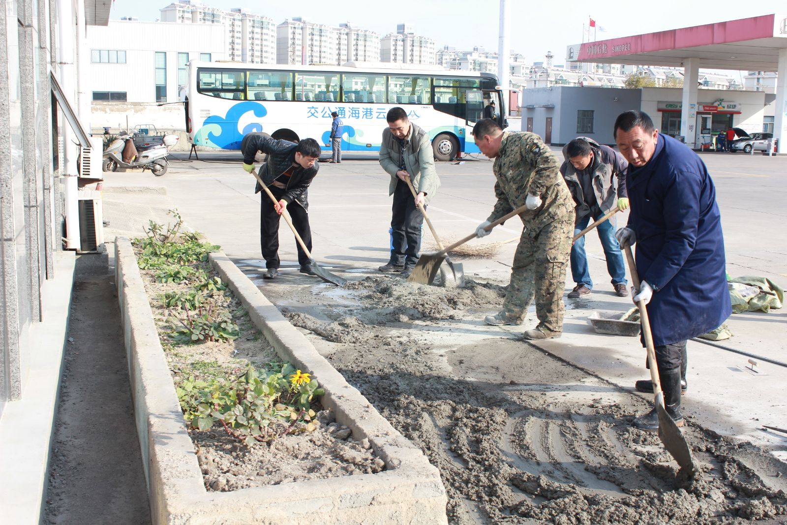 為做好創(chuàng)衛(wèi)工作,確保責(zé)任區(qū)域干凈、整潔及美化工作環(huán)境,12月9日上午,公交東部公司開展公司總站場(chǎng)地面修繕工作。公司副書記寧濘、副經(jīng)理張煒帶領(lǐng)管理人員將公司場(chǎng)站內(nèi)多處破損的水泥地面重新修補(bǔ)平整。由于缺少相關(guān)材料和工具,大家獻(xiàn)計(jì)獻(xiàn)策、分工合作,有的攪拌水泥、有的用抹子將水泥面抹平……整個(gè)過程進(jìn)展很順利,地面修繕效果較好。