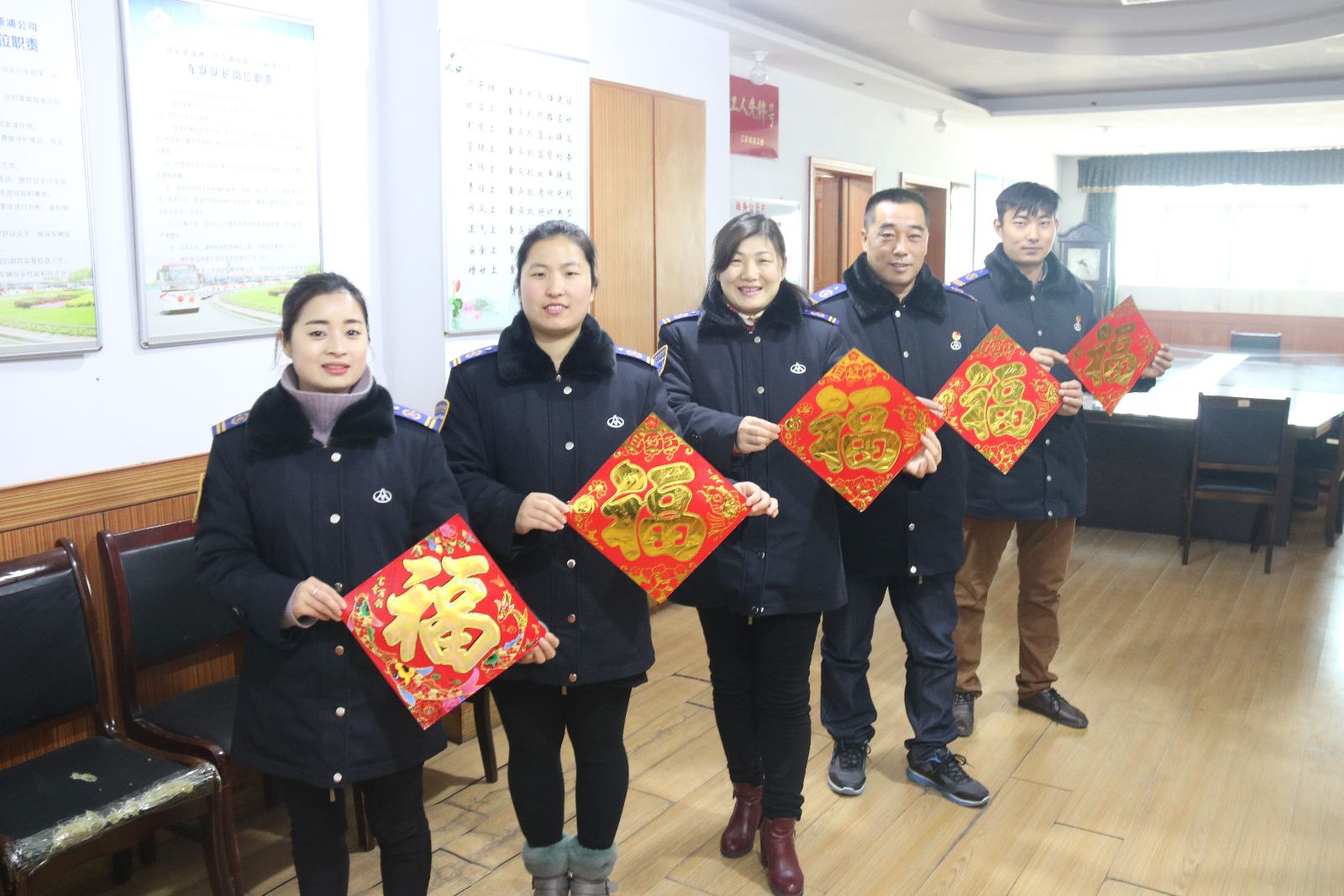 公交新浦公司貼對(duì)聯(lián)、貼福字喜迎金雞春節(jié)