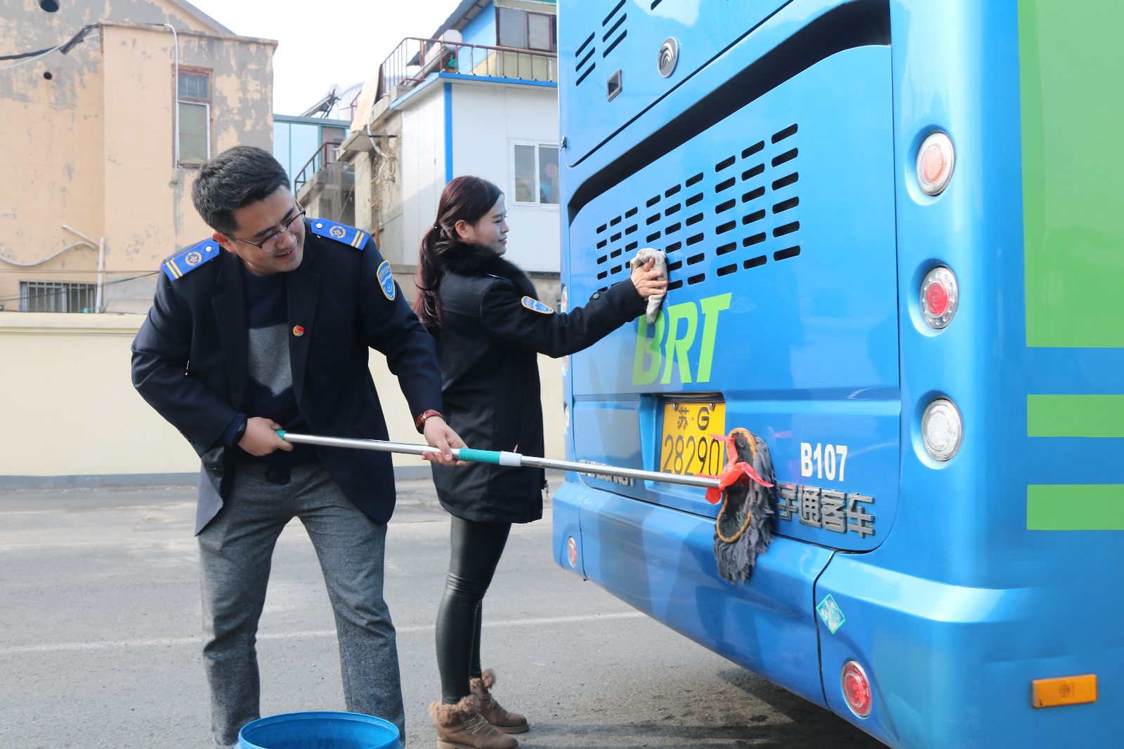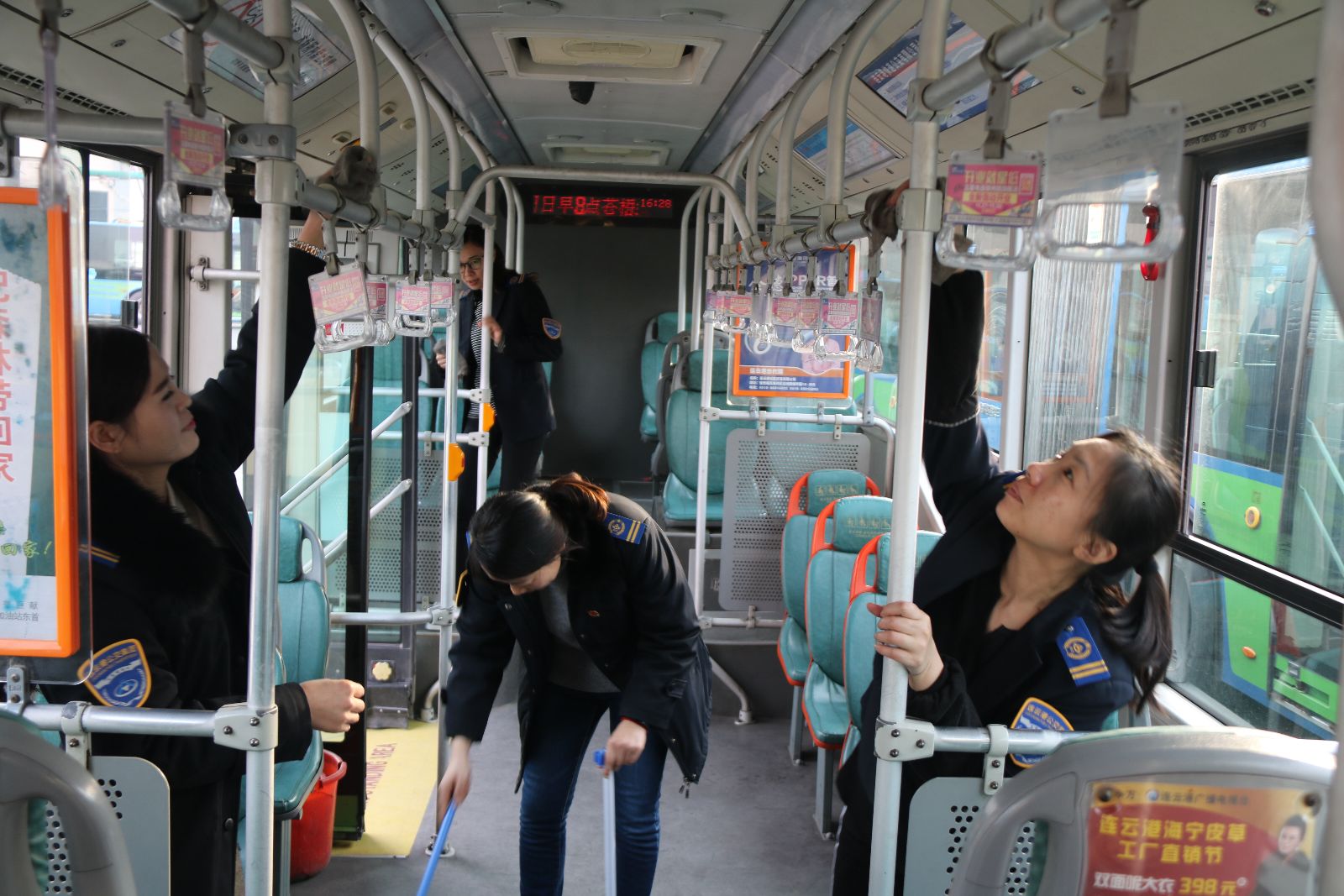 公交快速公司認(rèn)真貫徹落實社會主義核心價值觀,加強窗口文明行業(yè)建設(shè),積極踐行公交優(yōu)秀、公交優(yōu)先。2017年3月3日下午,快速公交四樓管理人員共12人,分成三組在海州客運站對B1線車輛和B12線車輛車廂衛(wèi)生進行一趟一掃一抹。參加活動的管理人員,逐一打掃進站車輛車廂衛(wèi)生,擦洗座位、窗裙、玻璃和扶手,為乘客乘車出行提供良好的乘車環(huán)境。此次活動的目的是帶動廣大駕駛員提升服務(wù)理念、優(yōu)化車廂環(huán)境,認(rèn)真落實公交十項服務(wù)承諾,切實做到車輛衛(wèi)生一日一大掃、一趟一小掃、雨過天晴車身干凈。以優(yōu)質(zhì)服務(wù)、優(yōu)美環(huán)境、優(yōu)良秩序為乘客提供滿意服務(wù)。