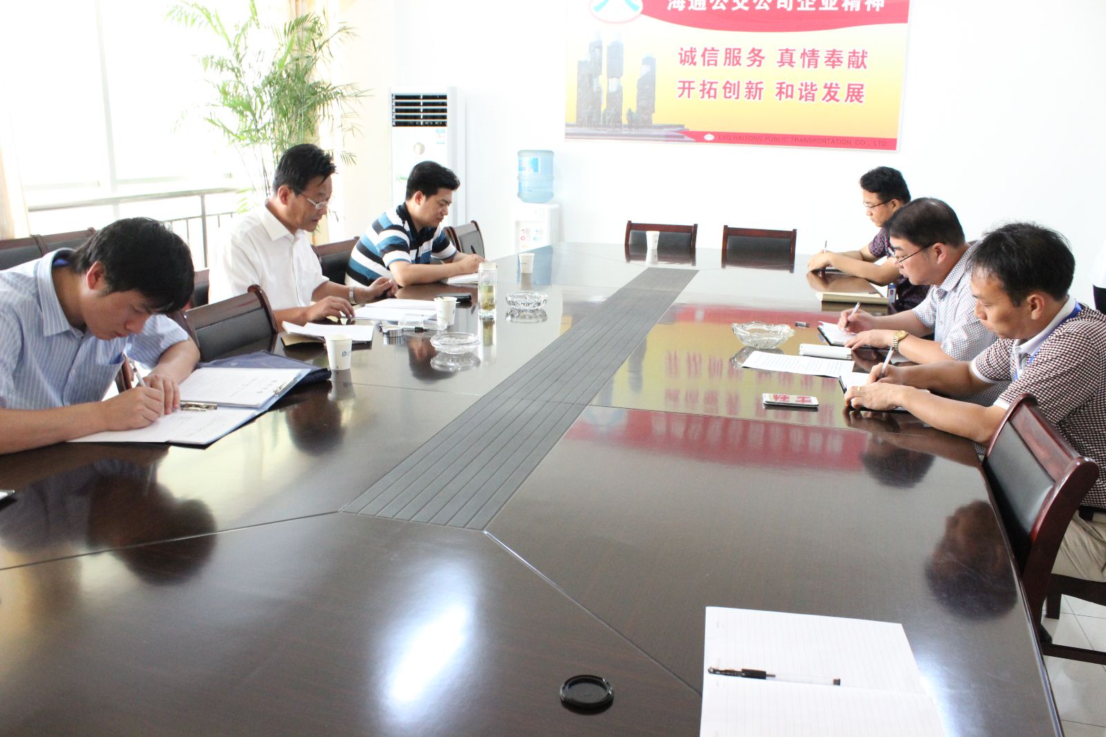海通公交副總經(jīng)理于京濤專題匯報了公司安全生產(chǎn)標準化申報及推進、百日安全生產(chǎn)大檢查開展、車輛安全生產(chǎn)大檢查、消防安全大檢查、高溫天氣安全行車及應對防范工作情況、BRT站臺及常規(guī)公交汛期防洪等工作情況,胡部長一行對公司的安全工作給予了肯定,并對安全生產(chǎn)標準化創(chuàng)建工作提出了寶貴意見,并強調(diào)以安全標準化為抓手,內(nèi)緊外松,通過扎實的安全管理工作,確保萬無一失,確性過關。