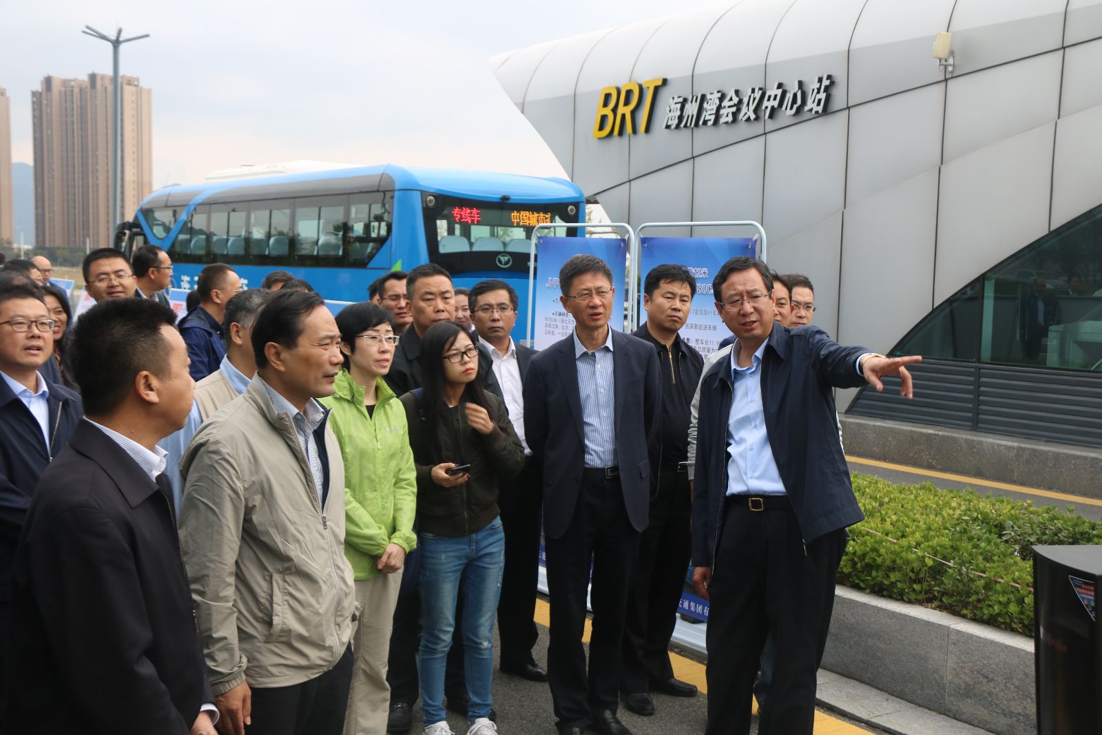 交流研討會結束后,所有參會人員乘車前往城市家具現場進行觀摩,近距離的了解連云港。觀摩過程中,講解員聲情并茂的為參會人員全面介紹了連云港家具城市建設的最新成果,市公交集團總經理、黨委書記劉佃華在BRT海鷗站臺和西城公交總站兩個觀摩點為來賓具體的介紹了快速公交運營、新能源充電樁和車輛的運營特點。