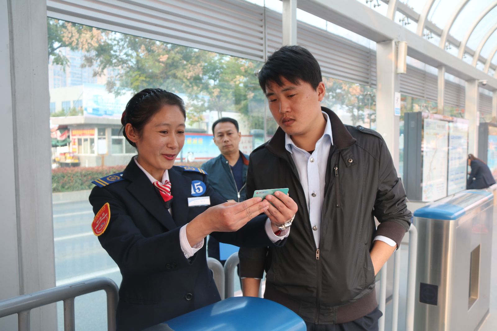 2016年10月27日,在公交集團(tuán)的籌備和組織下,公交快速公司站務(wù)員服務(wù)技能競(jìng)賽活動(dòng)圓滿結(jié)束。本次技能競(jìng)賽分為理論考試和現(xiàn)場(chǎng)技能考核兩個(gè)部分。145名站務(wù)員通過初賽、復(fù)賽,最終15名優(yōu)秀站務(wù)員被選拔出來參加決賽,決賽在郁海廣場(chǎng)上行站和下行站兩個(gè)考點(diǎn)進(jìn)行,分為售檢票操作和應(yīng)急處理二個(gè)部分,并對(duì)站務(wù)員進(jìn)行綜合打分。