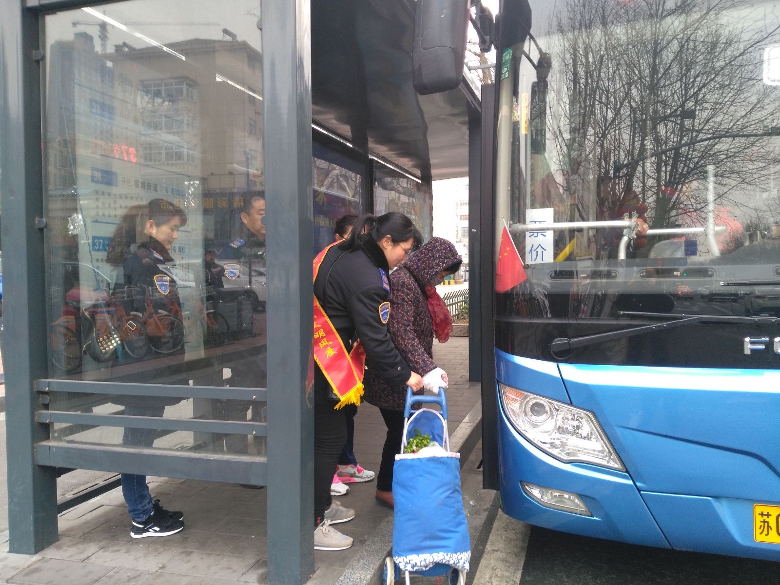 志愿者們分別來到連云港東站、購物中心南兩個客流集中的公交站點開展“文明乘車”勸導活動。活動現(xiàn)場,志愿者們認真指揮公交車輛進站停靠,耐心勸導乘客有序上下車,熱情攙扶行動不便的老人乘車入座,積極向廣大市民宣傳安全文明乘車。同時,志愿者們還走進車廂,積極倡導廣大乘客傳承雷鋒精神,主動為老弱病殘孕等弱勢群體讓座,營造文明車廂美好氛圍。車廂內,乘客們紛紛支持響應,并對公交志愿者們熱情周到的服務給予了高度贊譽。