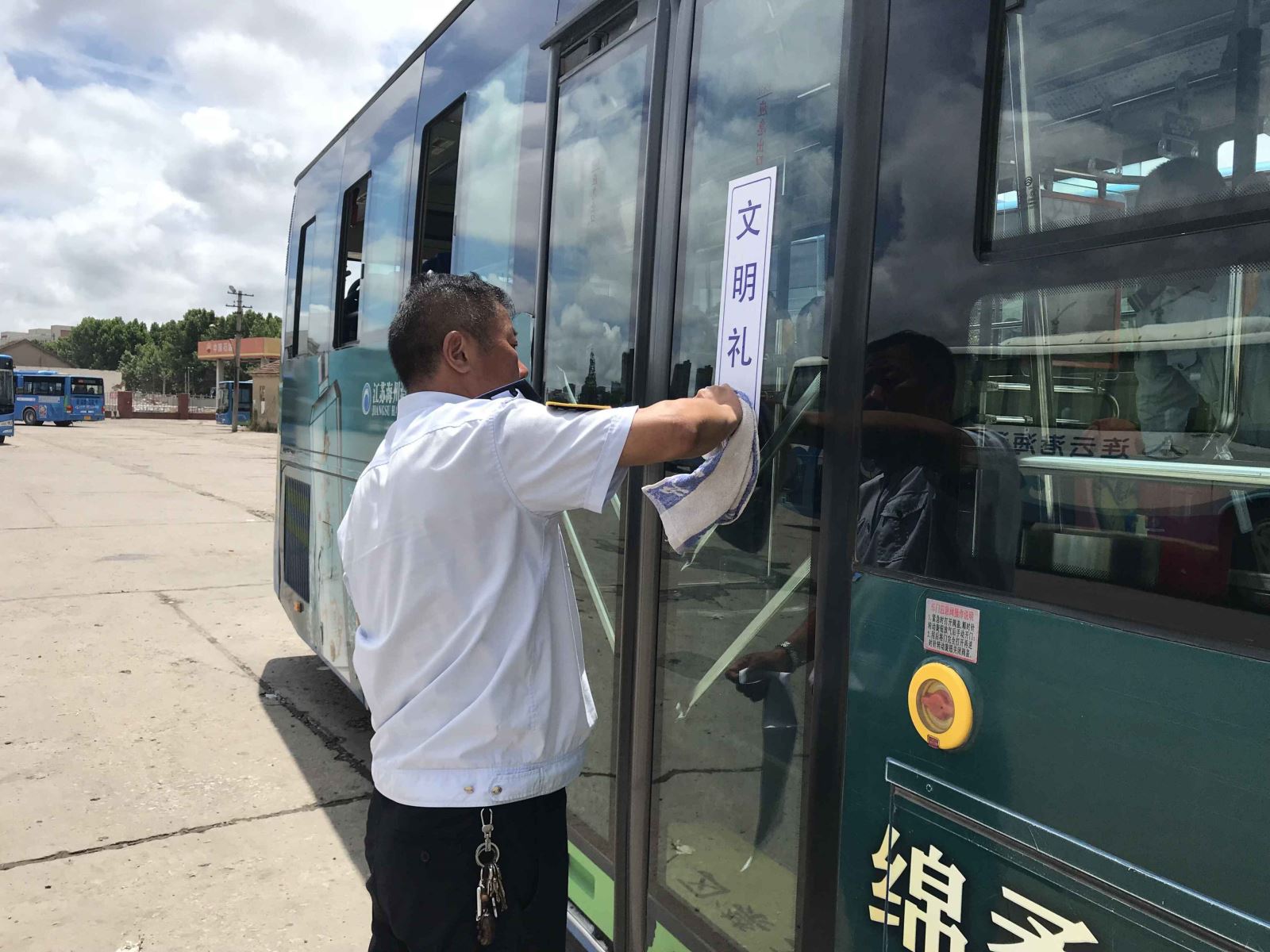公交集團(tuán)海通公交公司張貼車輛文明標(biāo)識營造創(chuàng)文氛圍