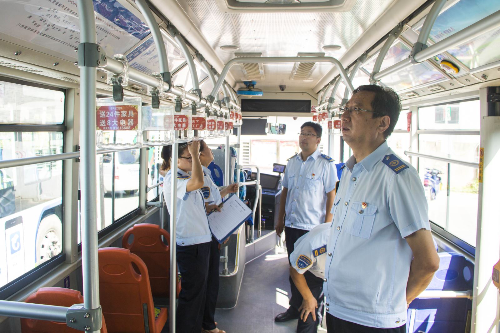 劉佃華一行深入黨校、海州客運(yùn)站、香溢、華威等公交場(chǎng)站,對(duì)車(chē)廂內(nèi)的衛(wèi)生情況、創(chuàng)文宣傳廣告張貼情況、各場(chǎng)站辦公場(chǎng)所的衛(wèi)生情況、創(chuàng)文氛圍進(jìn)行細(xì)致檢查。通過(guò)檢查,劉佃華指出:雖然整體創(chuàng)文、衛(wèi)生情況良好,但辦公場(chǎng)所在衛(wèi)生死角方面清理不到位,各權(quán)屬單位要嚴(yán)格對(duì)照創(chuàng)文標(biāo)準(zhǔn),明確創(chuàng)文工作要求,要重點(diǎn)在環(huán)境衛(wèi)生、服務(wù)水平和創(chuàng)文公益廣告宣傳氛圍等方面下功夫,查漏補(bǔ)缺,認(rèn)真開(kāi)展自查自糾,確保創(chuàng)文工作落到實(shí)處、取得實(shí)效。