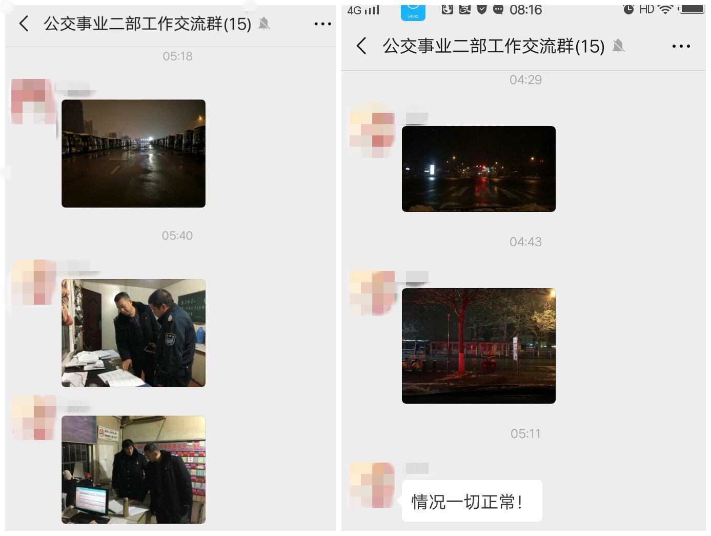 公司提前進(jìn)入臨戰(zhàn)狀態(tài),全面實行24小時值班、倒班制度,各相關(guān)負(fù)責(zé)人明確責(zé)任分工,做到快速反應(yīng)、有效應(yīng)對。各領(lǐng)導(dǎo)干部、管理人員、調(diào)度員、駕駛員均提前到崗,幫助清掃積雪、鏟除積冰,保證公交首班車準(zhǔn)點(diǎn)發(fā)車。經(jīng)過全員的共同努力,首班車輛全部準(zhǔn)點(diǎn)發(fā)出,保障了線路的有序運(yùn)營。