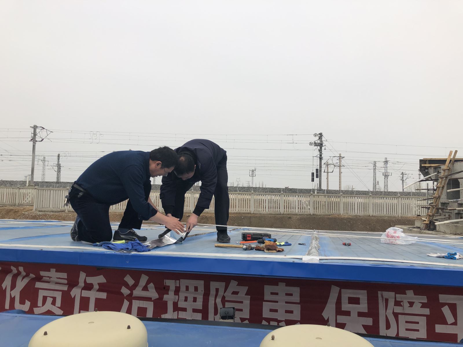 近日,江化北路停車(chē)場(chǎng)駕駛員飲水間房頂出現(xiàn)漏雨現(xiàn)象,導(dǎo)致無(wú)法正常飲水和午餐。公交集團(tuán)公交事業(yè)一部分公司結(jié)合實(shí)際需求,利用現(xiàn)有資源臨時(shí)搭建了一個(gè)簡(jiǎn)易飲水間,內(nèi)部配置了一臺(tái)微波爐、冰箱和茶水桶,方便駕駛員跑班休息間隙使用。隨后,公交事業(yè)一部分公司買(mǎi)來(lái)防水材料,帶領(lǐng)管理人員爬上房頂,對(duì)漏雨的屋頂進(jìn)行防漏施工補(bǔ)救。