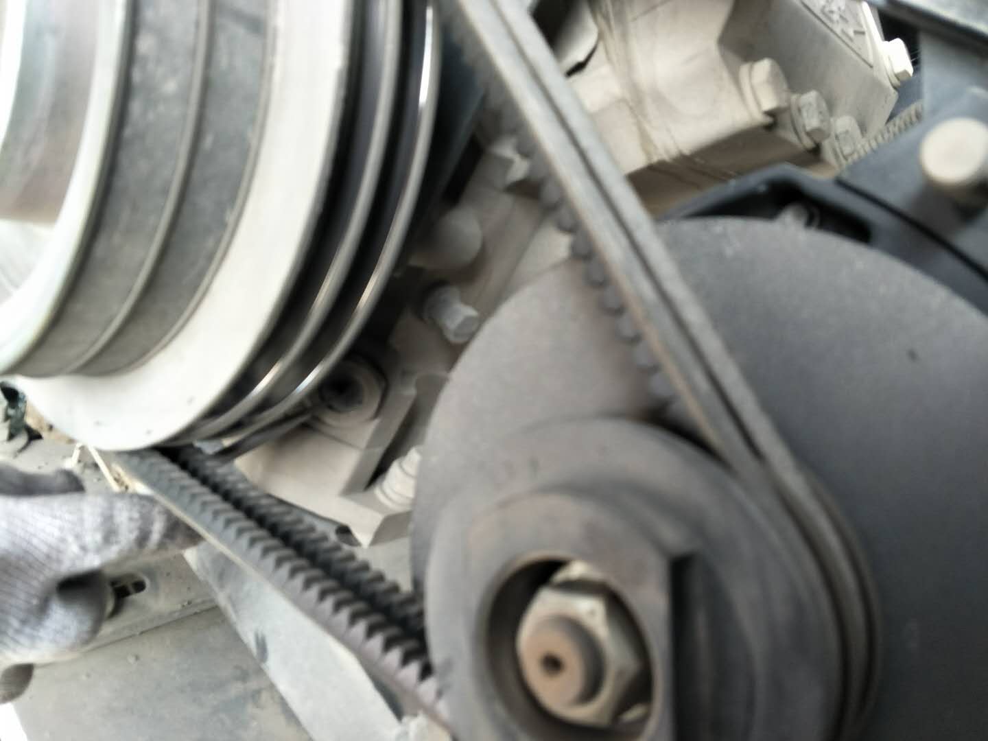 4.用手按壓壓縮機至發(fā)動機皮帶中間位置,8-10mm為正常,按壓超過10mm需要調(diào)整張緊度。(傳統(tǒng)燃油氣車輛)