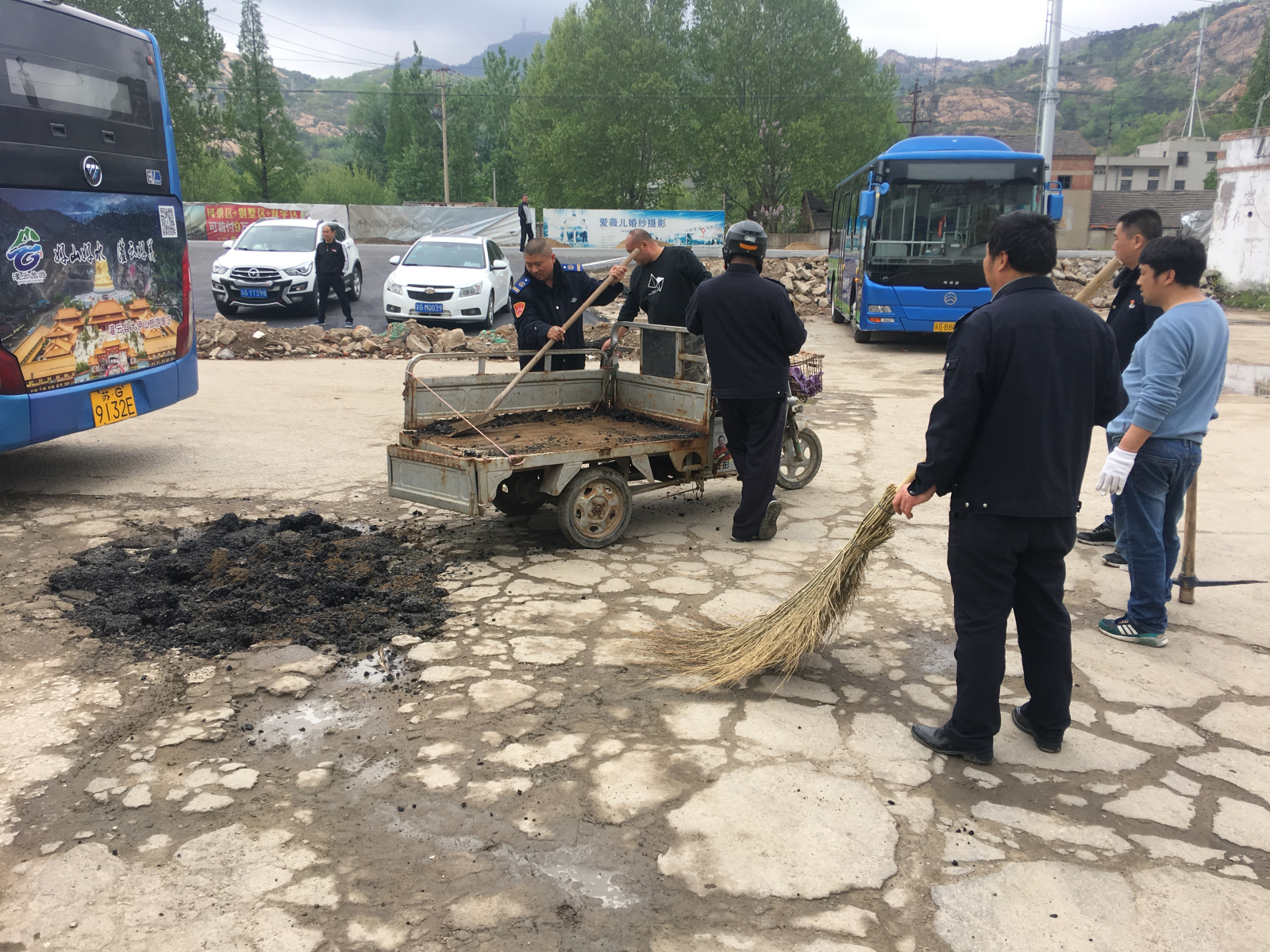 為保障安全行車,為乘客創(chuàng)造安全的乘車環(huán)境,5月4日上午,公交集團(tuán)公交事業(yè)一部管理人員帶領(lǐng)部分駕駛員,手拿鐵鍬,推著小車自發(fā)組織來(lái)到磷礦場(chǎng)站,對(duì)破損路面進(jìn)行填補(bǔ)。大家先是將空洼里面的積水清理干凈,再用瀝青將坑填平,平整的道路進(jìn)一步改善了乘客的出行環(huán)境,保障了乘客及公交車輛的行駛安全。