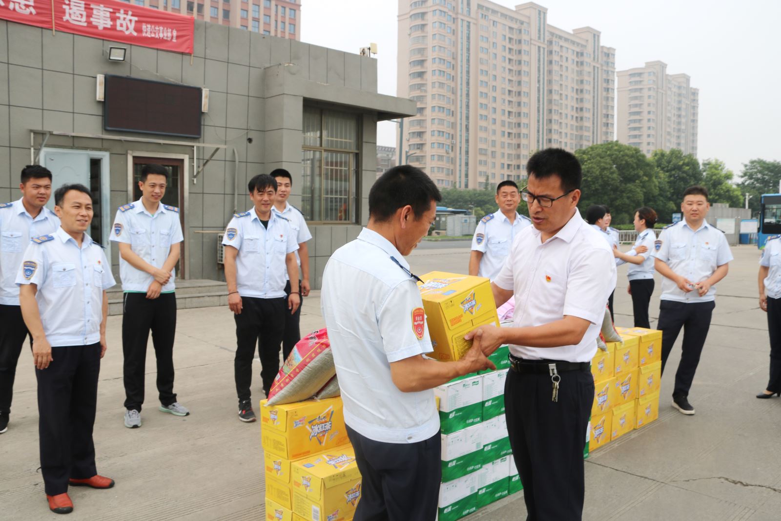 “入伏”以來(lái),全市氣溫持續(xù)增高,公交集團(tuán)千余名一線(xiàn)職工戰(zhàn)高溫、斗酷暑、保運(yùn)營(yíng),用實(shí)際行動(dòng)保障港城市民在高溫天氣安全順暢出行。為表達(dá)對(duì)奮戰(zhàn)在一線(xiàn)的廣大員工的關(guān)懷,7月15日,公交集團(tuán)黨委班子一行,攜帶防暑降溫物品前往各基層單位、公交場(chǎng)站,深入公交服務(wù)一線(xiàn),在炎炎夏日為堅(jiān)守在工作崗位上的公交一線(xiàn)職工送去清涼和關(guān)愛(ài)。