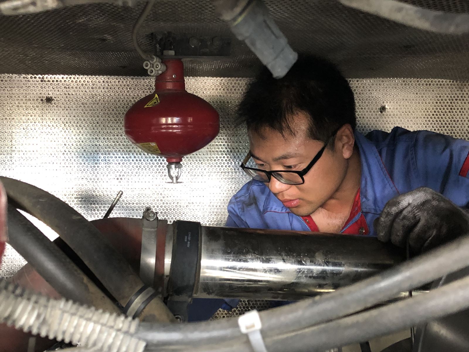不存在午休不午休,只要有故障的車子送到這里來維修,維修工們就會(huì)精心檢查。夏季,這個(gè)時(shí)候的太陽最為毒辣,但這并沒有使維修工們退卻,濕透的衣服、滴落的汗水述說著他們的全力以赴。