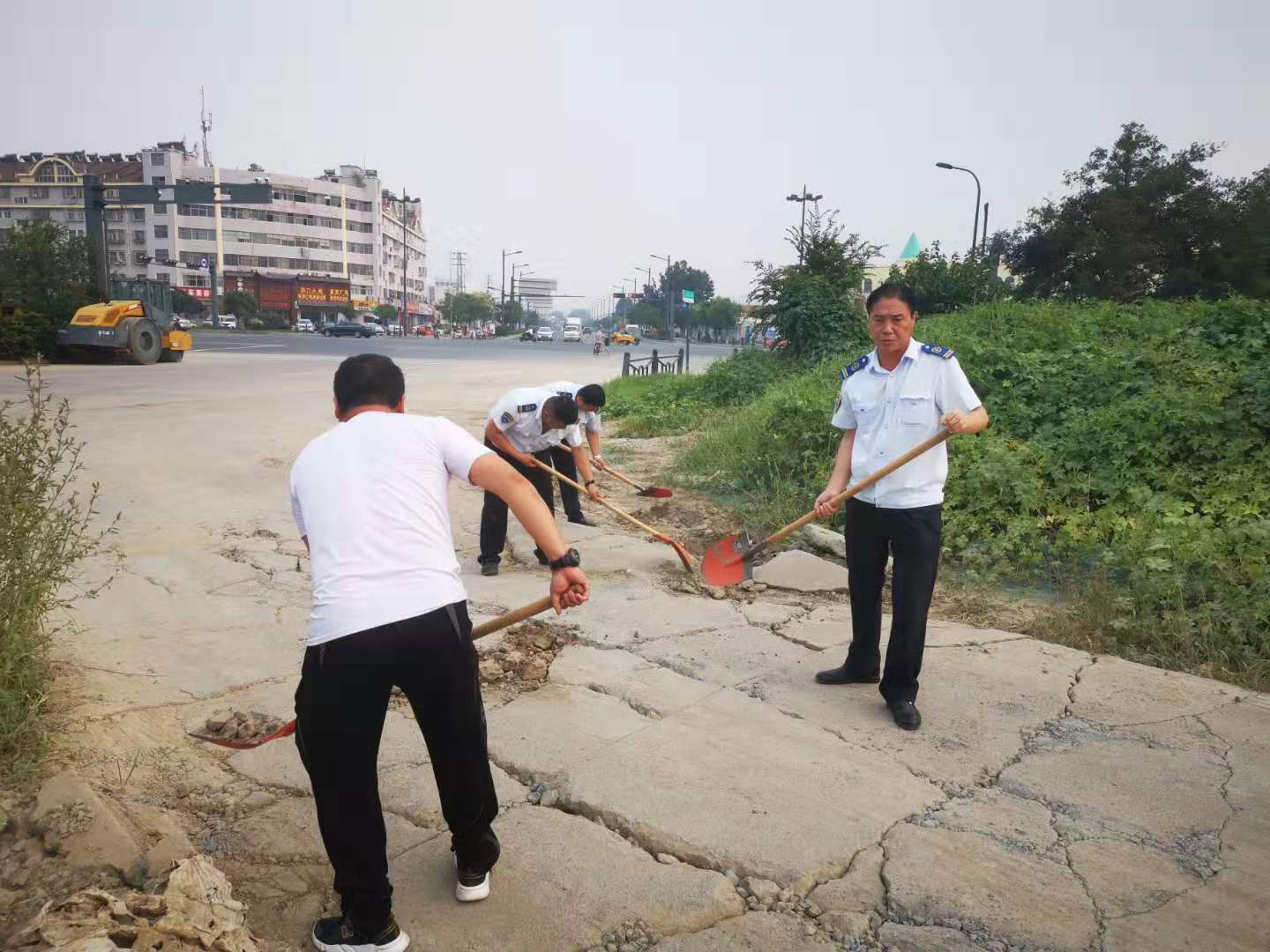 江化北路停車場內(nèi)每天出入公交車輛達數(shù)百臺次,近日,由于天氣連續(xù)高溫和暴雨的沖刷,導致場站出口處部分路面出現(xiàn)坑槽、沉陷等狀況,對出入公交車輛底盤造成嚴重安全隱患,也給上下班員工的通行帶來不便。公交集團經(jīng)營發(fā)展事業(yè)部佳連分公司經(jīng)理武傳德立刻行動,召集管理人員拿起鐵鍬扥工具修補破損路面,大家將泥土和沙石填置到低洼損壞的路坑中,為提高效率,有的同志甚至摒棄工具,徒手搬運磚石和石塊,不到1小時,坑洼的路面被修復平整。
