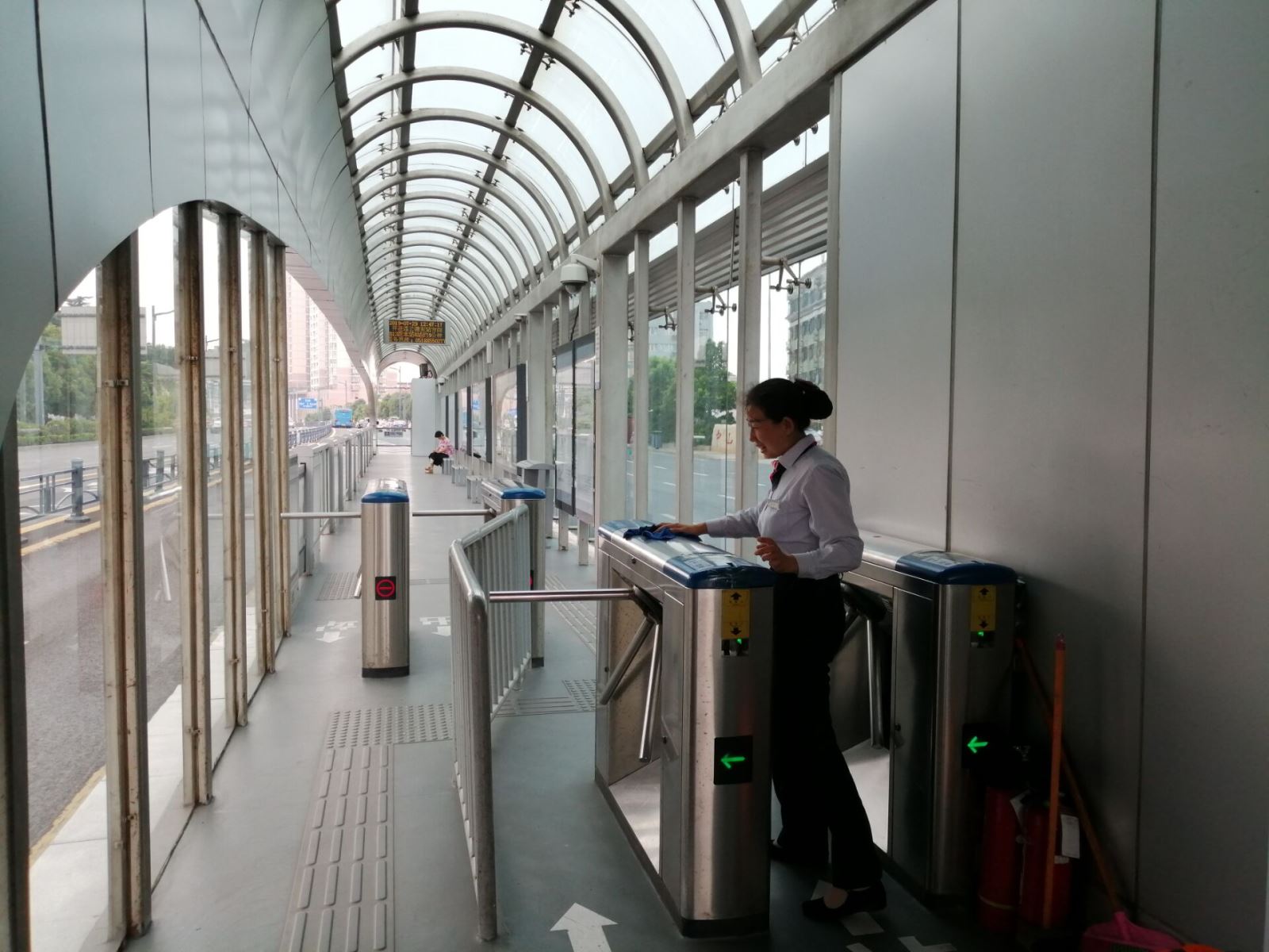 在BRT院前站,有一名80歲左右的老年乘客,幾乎每天都要從站臺獨自乘車往返,每次,老人都會推著一輛手推車,用來放置購買的物品,但進出站時很不方便。只要看到老人,陳新梅就會遠遠的迎上前去,微笑著和老人打招呼:“老人家,今天又出來轉(zhuǎn)轉(zhuǎn)啦?”一邊說著一邊接過老人的手推車,將老人攙扶進站臺。老人的臉上也是從開始的歉意到后面拉著陳新梅的手說:“閨女,你上班啦,今天又麻煩你啦。”陳新梅都會笑了笑說:“不麻煩,沒事,誰還能不老???”