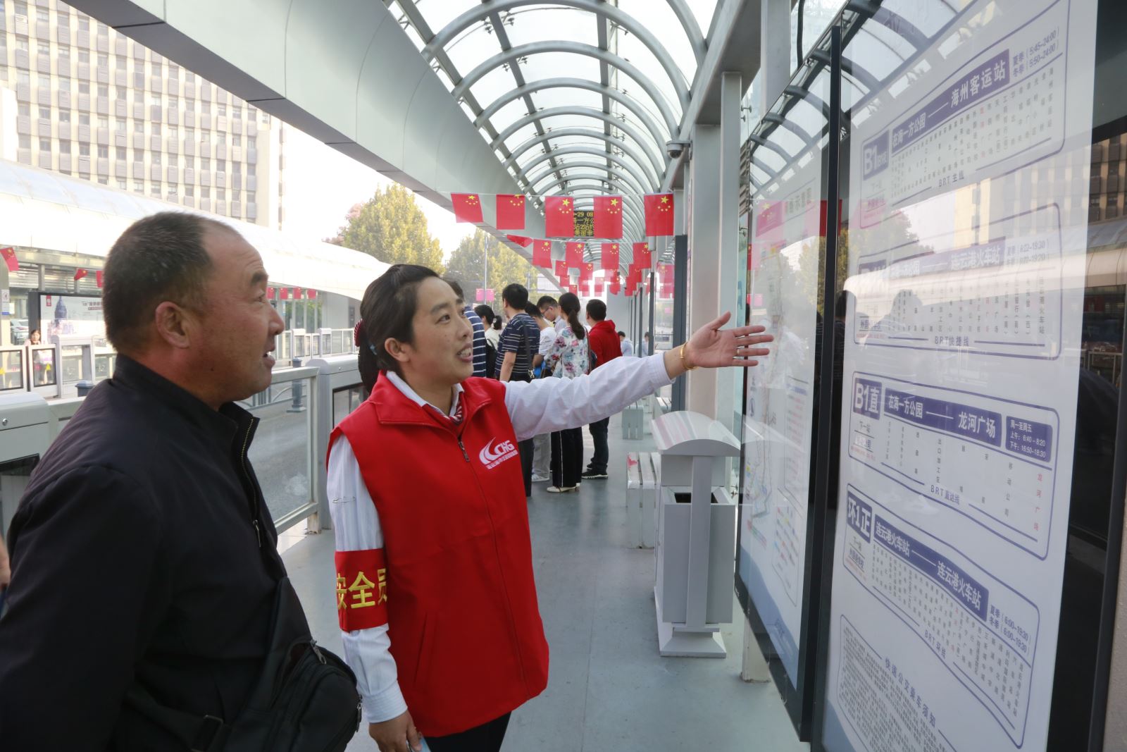 國慶期間,公交集團(tuán)給海州站、龍河廣場、購物中心等十三個BRT站臺配備雙班站務(wù)員,同時配備手持金屬檢測儀,對乘客是否攜帶違禁品進(jìn)行準(zhǔn)確掃描。另外,我們還為每個換乘站配備了一名穿工作服佩戴紅袖章的安全員,協(xié)助站務(wù)員對乘客攜帶可疑包裹、物品進(jìn)行檢查,對可疑人員進(jìn)行詢問,杜絕危險品進(jìn)站上車,進(jìn)一步提高BRT站臺的安全等級。