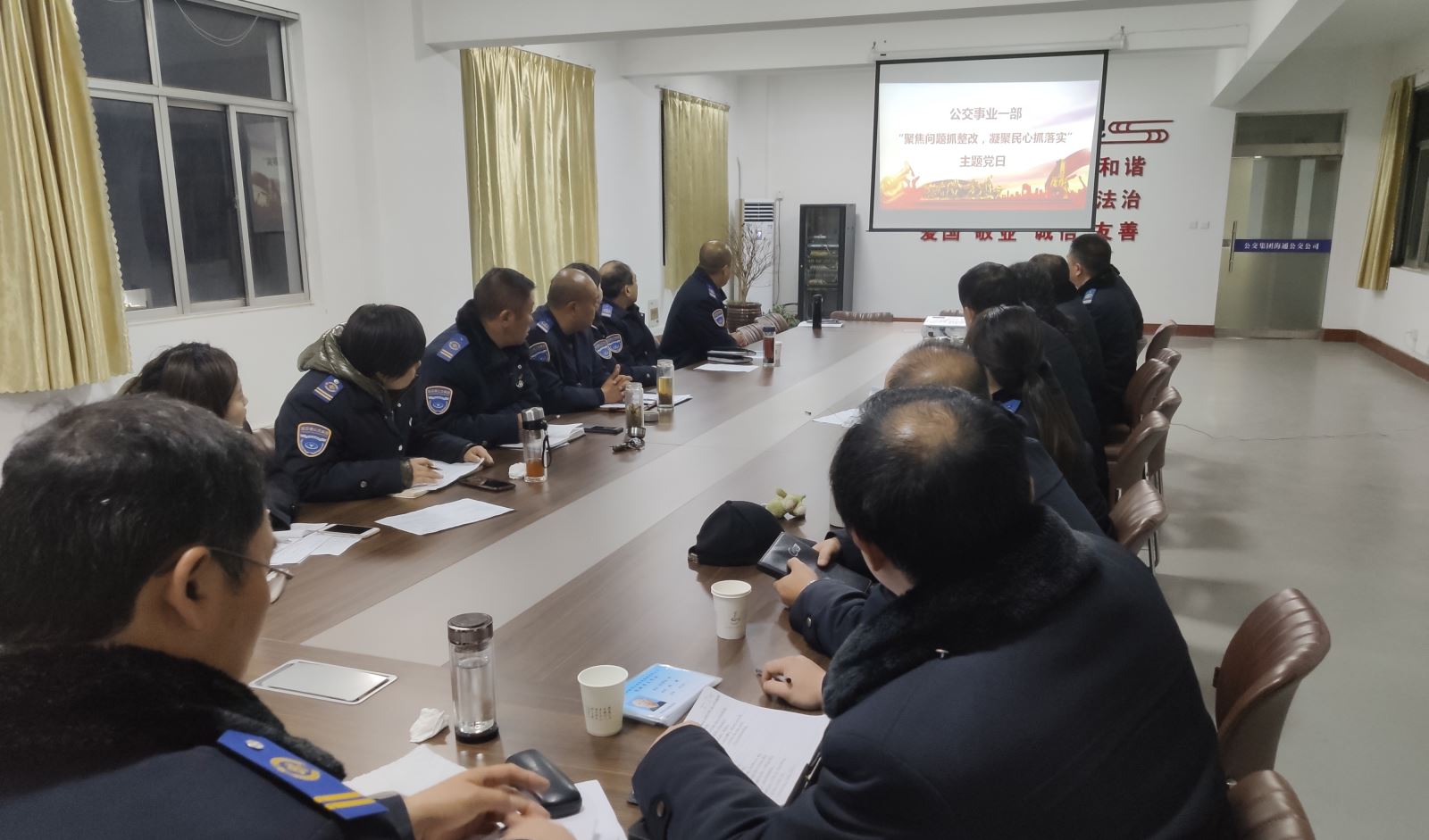 為深入開展“不忘初心、牢記使命”主題教育,進(jìn)一步學(xué)習(xí)貫徹習(xí)近平新時代中國特色社會主義思想和十九屆四中全會會議精神,公交集團(tuán)各事業(yè)部黨總支、黨支部開展了“聚焦問題抓整改,凝聚民心抓落實”主題教育活動,全體黨員、入黨積極分子參加活動。